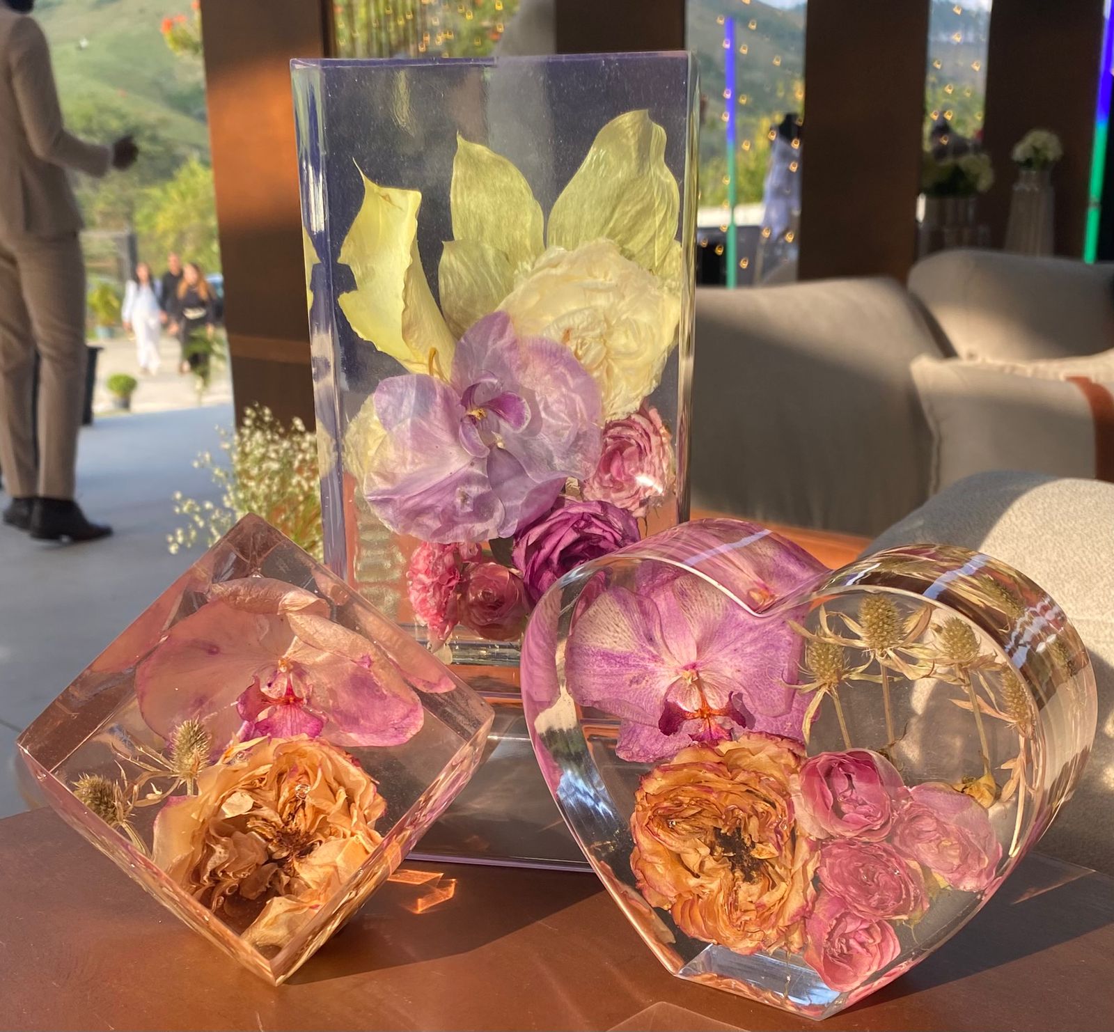 Há mais de uma década no universo dos casamentos como cerimonialista, Ângela Neres encontrou na arte com resina uma nova forma de eternizar momentos especiais. Inspirada por um pedido de noiva e incentivada por seu dom artesanal, ela passou a transformar buquês e lembranças em verdadeiras obras de arte. Cada peça é feita com técnica, sensibilidade e muito amor – desde a desidratação cuidadosa das flores até a criação final, sempre com participação da cliente. Além dos buquês encapsulados, o ateliê também cria itens como sousplats, bandejas e porta-copos. Atendendo em casa, no bairro Santo Agostinho (Volta Redonda/RJ), Ângela compartilha seu trabalho no Instagram @artista.angelaneres, encantando quem busca eternizar sentimentos com beleza e autenticidade.