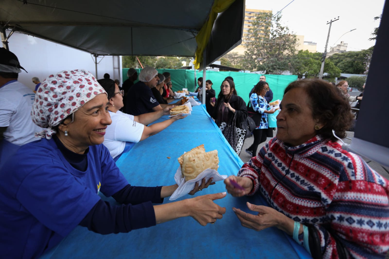 “Todo ano estou presente para comer a pizza frita. A fila fica até grande, mas anda muito rápido e vale muito a pena porque é gostosa demais. Sem contar nas outras comidas que também são maravilhosas. Com certeza vou comer um pouco de cada coisa e o melhor é saber que você ainda está ajudando as entidades beneficentes”, falou o vendedor Cláudio Alves, morador do bairro Retiro.