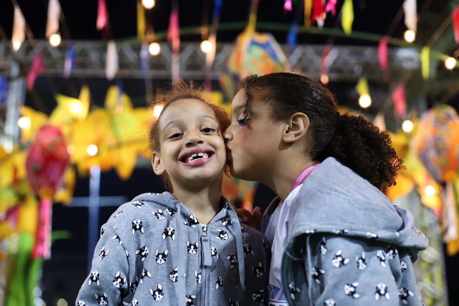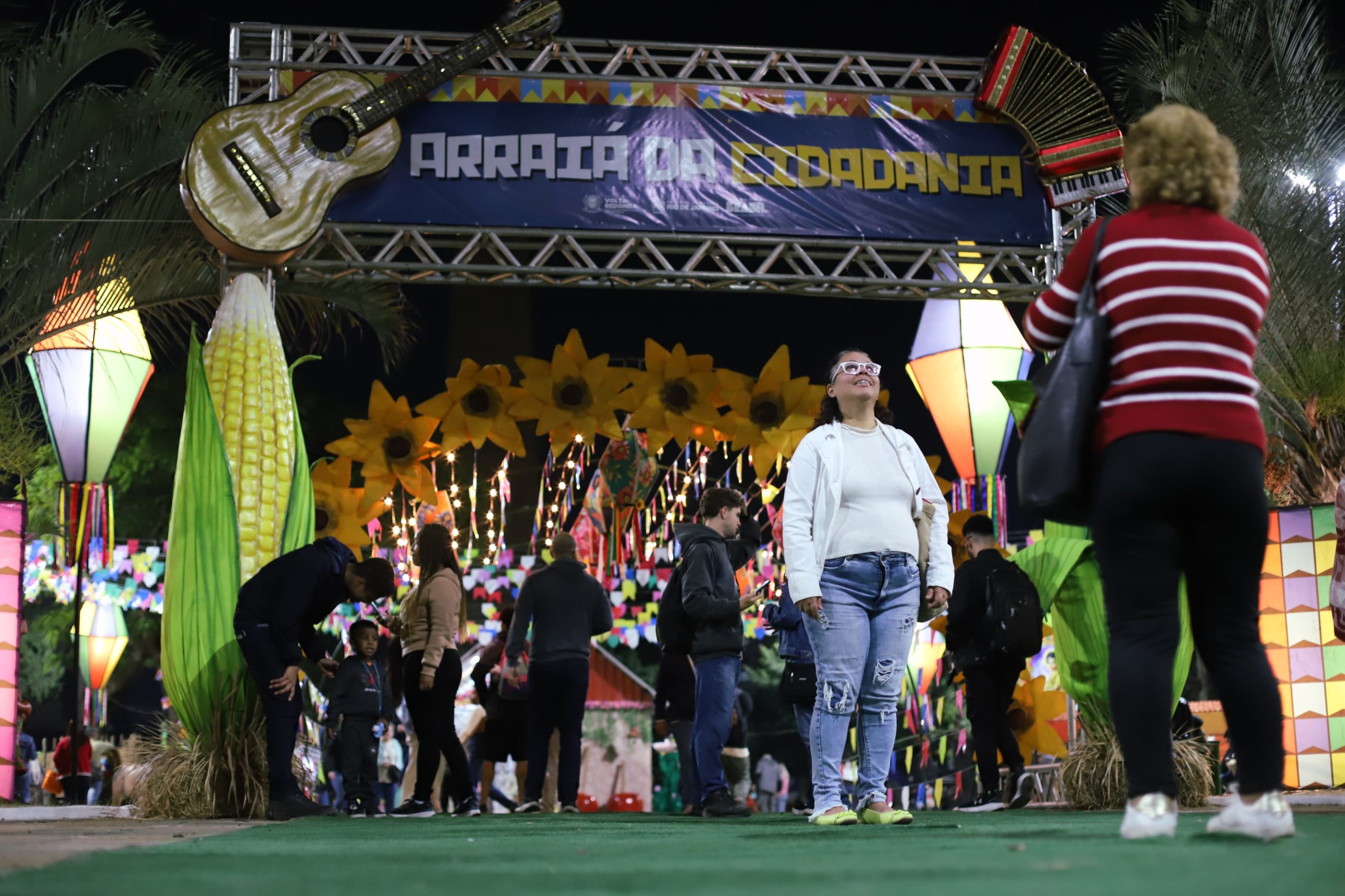 A gerente comercial, Alessandra Ribeiro, estava acompanhada dos seus filhos, Eloá e Lucas, e elogiou a decoração e a estrutura de mais um “Arraiá da Cidadania”.
