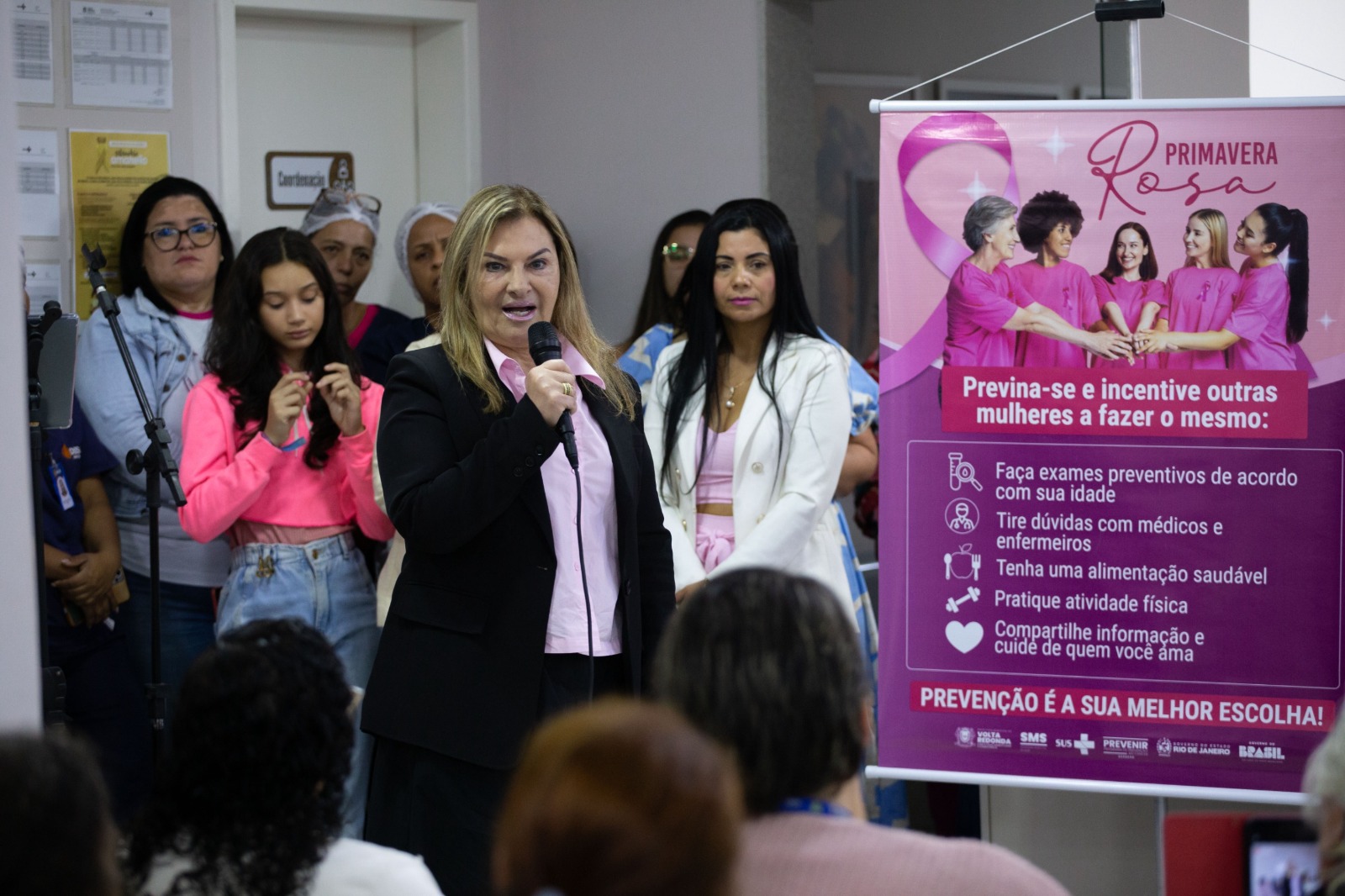 A Prefeitura de Volta Redonda, por meio da Secretaria Municipal de Saúde (SMS), deu início na manhã desta quarta-feira, dia 24, à campanha Primavera Rosa, com o objetivo de promover a conscientização sobre a importância da prevenção e do diagnóstico precoce do câncer de mama e do câncer do colo do útero. O evento foi realizado na Policlínica da Mulher, no bairro Aterrado, e contou com uma programação especial voltada para o cuidado integral da saúde da mulher, com o tema: Mulher: Prevenção é sua melhor escolha.