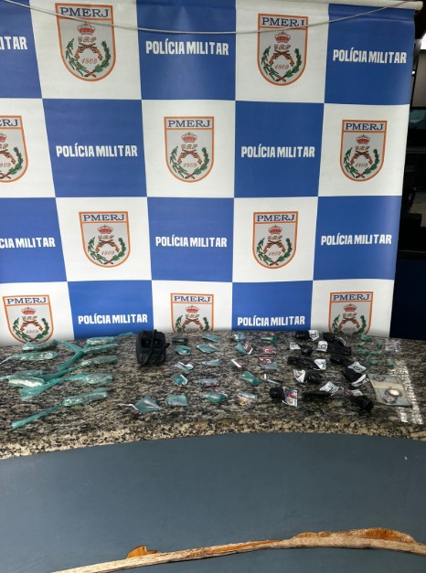 O material foi apreendido e o suspeito conduzido à 90ª DP, onde foi autuado pelos artigos 33 e 35 da Lei 11.343/2006, permanecendo preso.