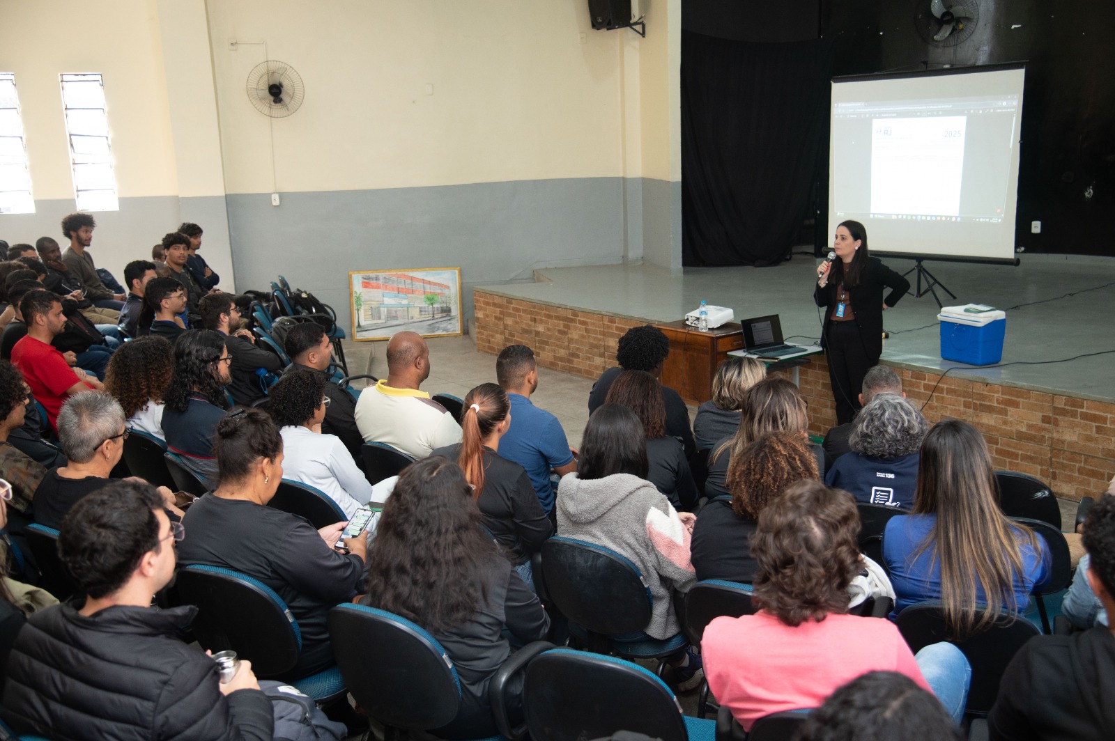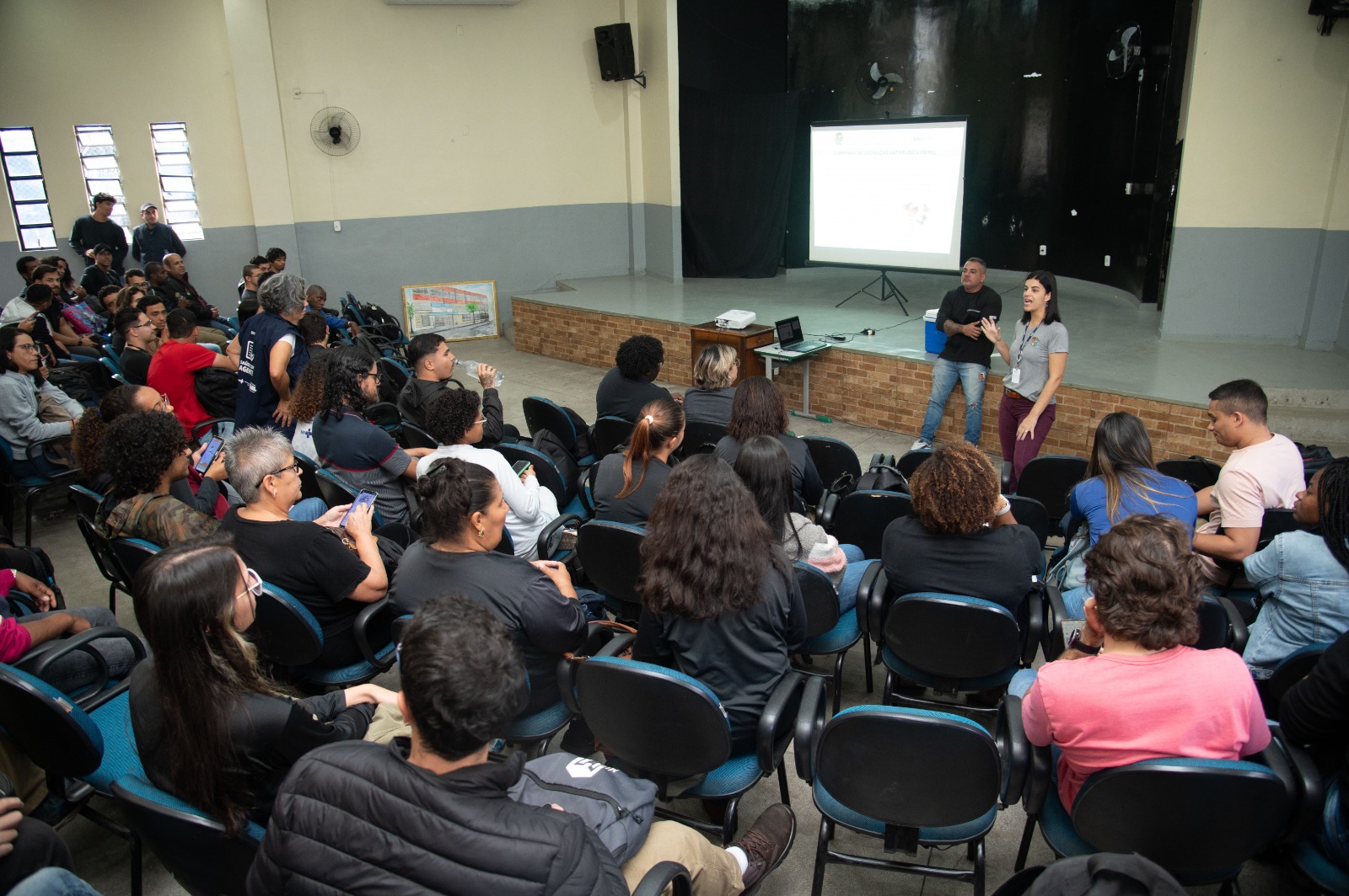 Durante o encontro, realizado no auditório do Centro Educacional Integrado Saturnina de Carvalho e Vieira da Silva (CEI), localizado no Centro, a coordenadora da Vigilância em Saúde Ambiental, Juliana Russi, apresentou os indicadores, metas e pactuações que orientam o trabalho dos agentes.
