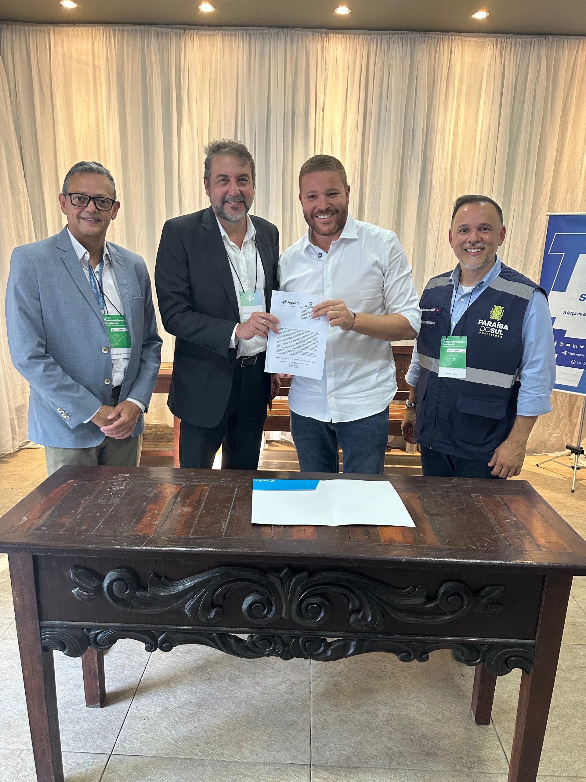 O acordo de Paraíba do Sul foi firmado pelo presidente da AgeRio, Sérgio Gusman, e pelo prefeito da cidade, Julio Canelinha, durante o Seminário de Desenvolvimento Territorial – Região Centro-Sul Fluminense, no Clube Social de Paraíba do Sul. A Agência também foi representada pelo diretor comercial, Paulo Aquino, e pelo superintendente de Operações Padronizadas da AgeRio, Bruno Bravo.