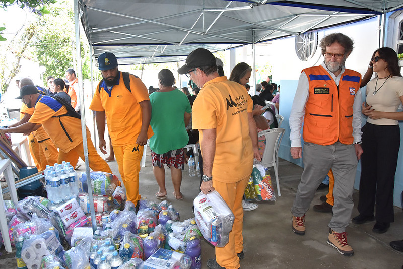 A visita incluiu ainda o bairro Parque Mambucaba, onde creches municipais estão sendo utilizadas como abrigos temporários. O secretário conversou com famílias desabrigadas e acompanhou o atendimento com entrega de alimentos, água, kits de higiene e o processo de cadastramento dos atingidos.