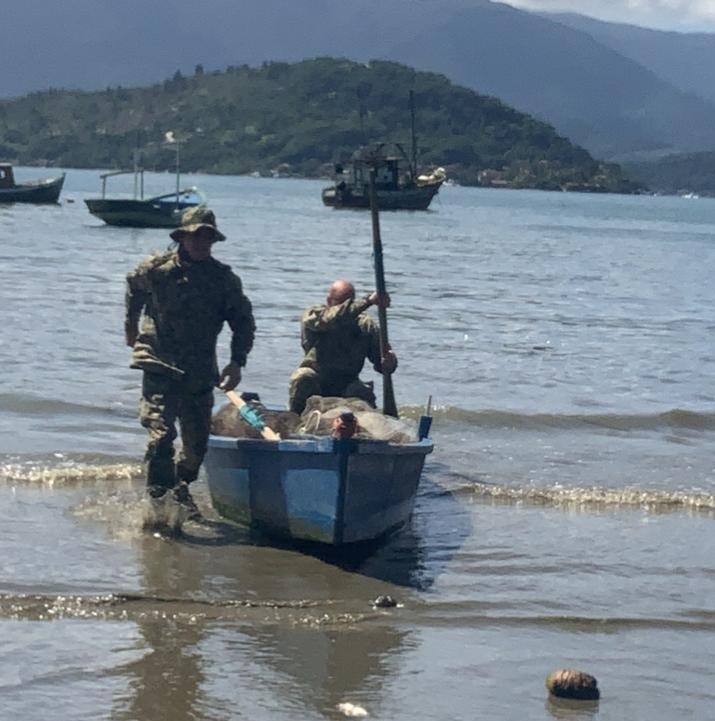 A denúncia que foi encaminhada aos policiais militares da 4ª UPAm, mencionava que, diariamente entre 5 e 6 horas, poderiam ser encontrados homens realizando pesca irregular, inclusive de espécies em período de defeso. Com essas informações, a equipe lotada na Unidade de Policiamento Ambiental do Parque Estadual da Juatinga esteve no local denunciado. “Já na chegada, podemos observar a aproximação de uma embarcação do tipo arrasto na costa do bairro Enseada, onde dois suspeitos estavam desembarcando duas caixas de isopor em uma canoa estacionada numa servidão de acesso à praia”, contaram os policiais que questionaram um dos suspeitos sobre o conteúdo das caixas e foram informados de que havia camarões e outros pescados. “Segundo o suspeito, a pesca de arrasto foi realizada com auxílio de uma embarcação de 36 pés durante a madrugada, mas o próprio não possuía nenhuma documentação legal junto a Capitania dos Portos e tampouco o Registro Geral de Atividade Pesqueira (RGP), infringindo então a instrução normativa do IBAMA, que versa sobre o período de defeso do camarão”, informaram os militares.