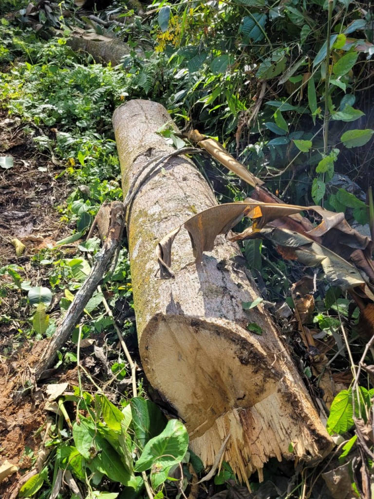 De acordo com a equipe da Unidade de Policiamento Ambiental do Parque Estadual da Juatinga, ao receberem as informações do Disque Denúncia, procederam ao local, onde constataram a veracidade da denúncia. Três árvores de grande porte foram encontradas cortadas, da mesma forma que observaram a abertura de uma estrada clandestina com marcas recentes de retroescavadeira, degradando cerca de 500 metros quadrados de área.