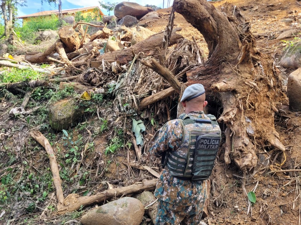 Policiais militares ambientais identificaram a abertura clandestina de uma estrada no alto do Morro do Gilmar, no Corumbê, em Paraty, no sábado, dia 9. Os policiais foram ao local após informações repassadas pelo Disque Denúncia, por meio do programa Linha Verde, voltado para denunciar crimes ambientais.