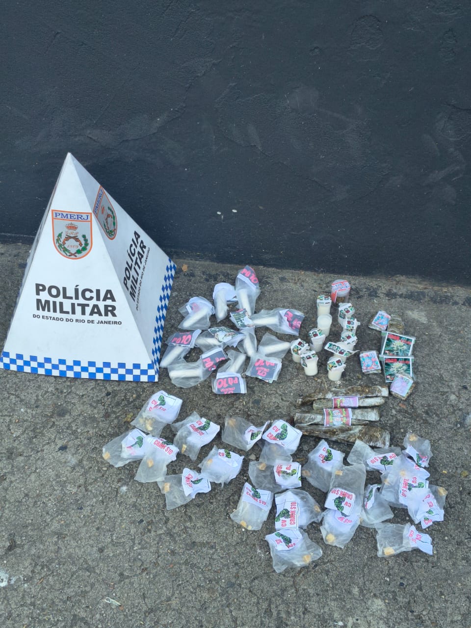 No material apreendido havia 22 pedras de crack, 20 pinos de cocaína de diferentes valores, além de diversas tiras de maconha, totalizando porções fracionadas prontas para comercialização. O suspeito não foi localizado.