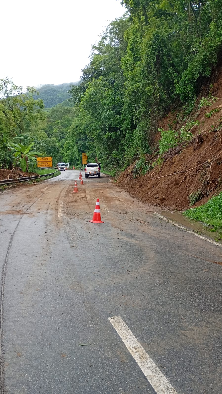 Por volta das 10h10min de hoje foi liberada a pista de descida, mas, no local do deslizamento, segue parcialmente interditado, com o fluxo de veículos fluindo apenas pela faixa da esquerda. Desfeita a mão dupla na pista de subida, que segue sem interdição. Segundo a Polícia Rodoviária Federal, ninguém ficou ferido. O tráfego de veículos chegou a seguir por apenas uma faixa durante o início do atendimento.