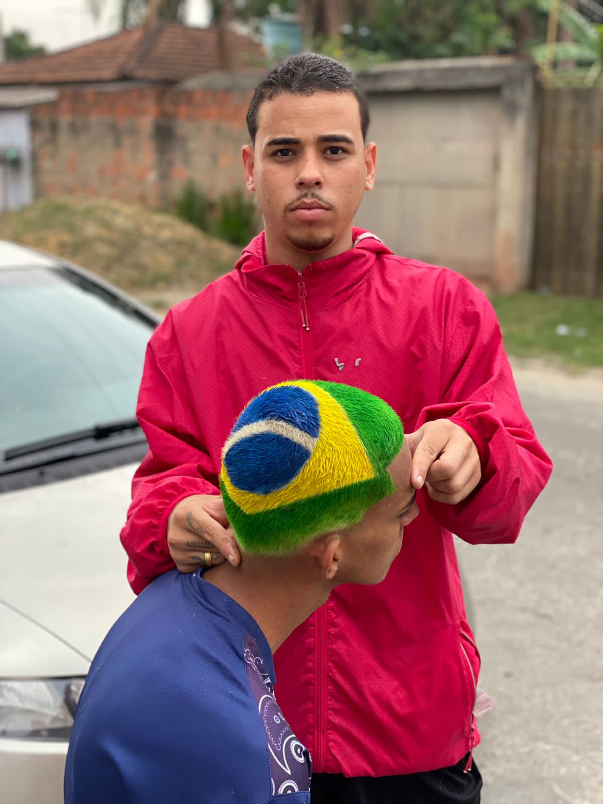 É o barbeiro Washington Rodrigo. Ele recentemente postou em suas redes sociais um vídeo de uma pintura da bandeira do Brasil na cabeça de um de seus clientes. No Instagram o vídeo alcançou a marca de 120 mil visualizações e no Tik Tok quatro milhões. O trabalho dele pode ser conferido em @wrbarbeiro.
