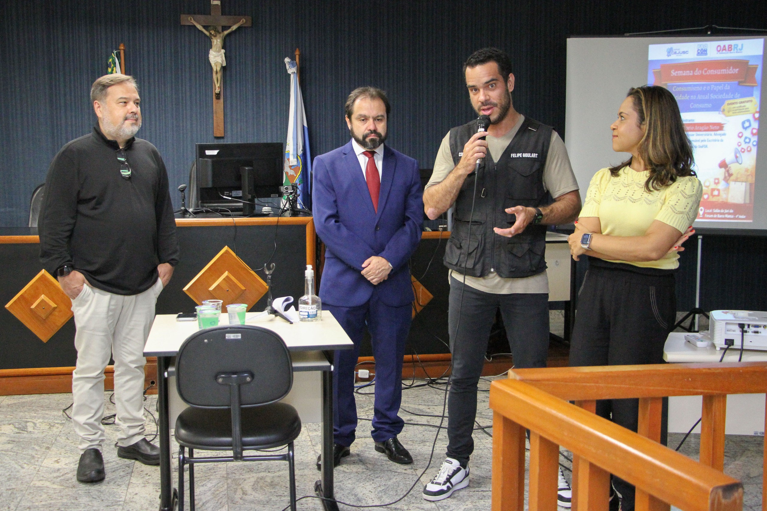 A abertura oficial aconteceu no Salão do Júri do Fórum de Barra Mansa, com a palestra “Consumismo e o Papel da Publicidade na Atual Sociedade de Consumo”, ministrada pelo professor universitário, advogado e responsável pelo Escritório da Cidadania do UniFOA, Dario Aragão Neto.