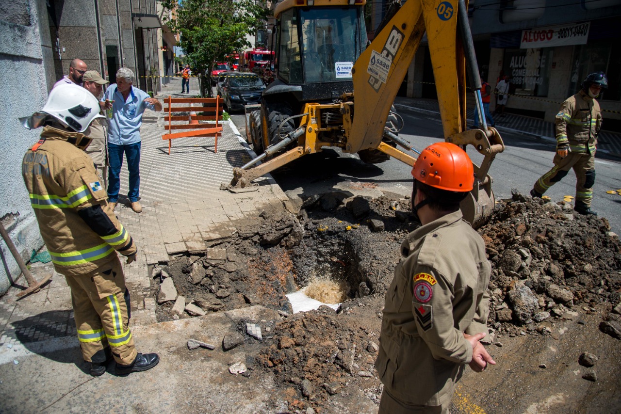 Segundo a Defesa Civil, foi um vazamento de gás natural. O Serviço Autonomo de Água e Esgoto (Saae) estava fazendo um serviço de manutenção de rede de esgoto no local e verificou que a tubulação estava desalinhada conforme a demarcação da calçada. Durante a perfuração, a equipe atingiu a tubulação, mas de imediato acionou a Defesa Civil, o Corpo de Bombeiros e a empresa responsável pelo gás. Todos envolvidos estão no local para os reparos.