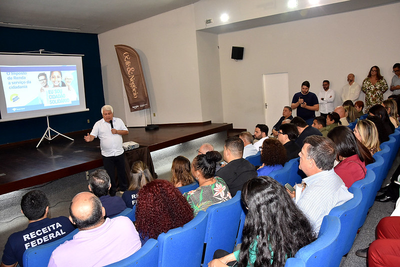 Abrindo a programação, José Antônio Calado, delegado da Alfândega do Porto de Itaguaí, explicou que a Receita Federal vem passando por um processo de modernização, buscando se aproximar da sociedade e mostrar que o imposto de renda pode ser um aliado da transformação social.