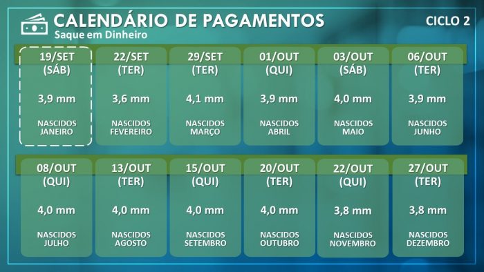 Os ciclos de crédito em conta e saques em espécie seguem até dezembro para o pagamento das parcelas definidas pelo Governo Federal para o público do CadÚnico e para quem se cadastrou pelo App CAIXA | Auxílio Emergencial ou pelo site auxilio.caixa.gov.br.