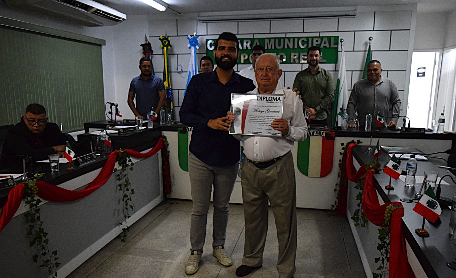 Como ponto alto da solenidade, o Legislativo promoveu a entrega do Diploma Vergínia Dezós a 11 personalidades, honraria criada para reconhecer descendentes de italianos que mantêm vivas as tradições, os costumes e os valores herdados de seus antepassados. O diploma simboliza o reconhecimento público à relevância da comunidade italiana na história local.