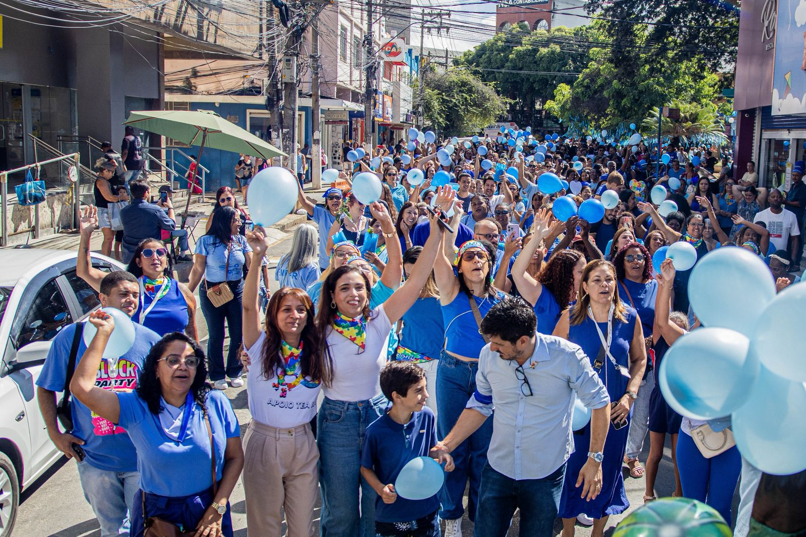 Em celebração ao Abril Azul, a “Caminhada do TEA” reuniu centenas de pessoas na manhã deste sábado, dia 12, na Praça Nilo Peçanha. O evento teve como objetivo promover a conscientização sobre o Transtorno do Espectro Autista (TEA), proporcionando um momento de acolhimento e lazer para as famílias atípicas. Além da prefeita Katia Miki acompanhada do secretário de Saúde e vice-prefeito, Cristiano Almeida, também estiveram presentes no evento a vereadora Lu Maciel; o vereador José Mauro Nascimento; a secretária de Assistência Social, Marina Tinoco; os secretários de Educação, Cleide Mara Rocha; de Comunicação, Hugo Marques e o de Turismo, Tadeu Oliveira; e o subsecretário de Esporte e Lazer, Rômulo Maciel.