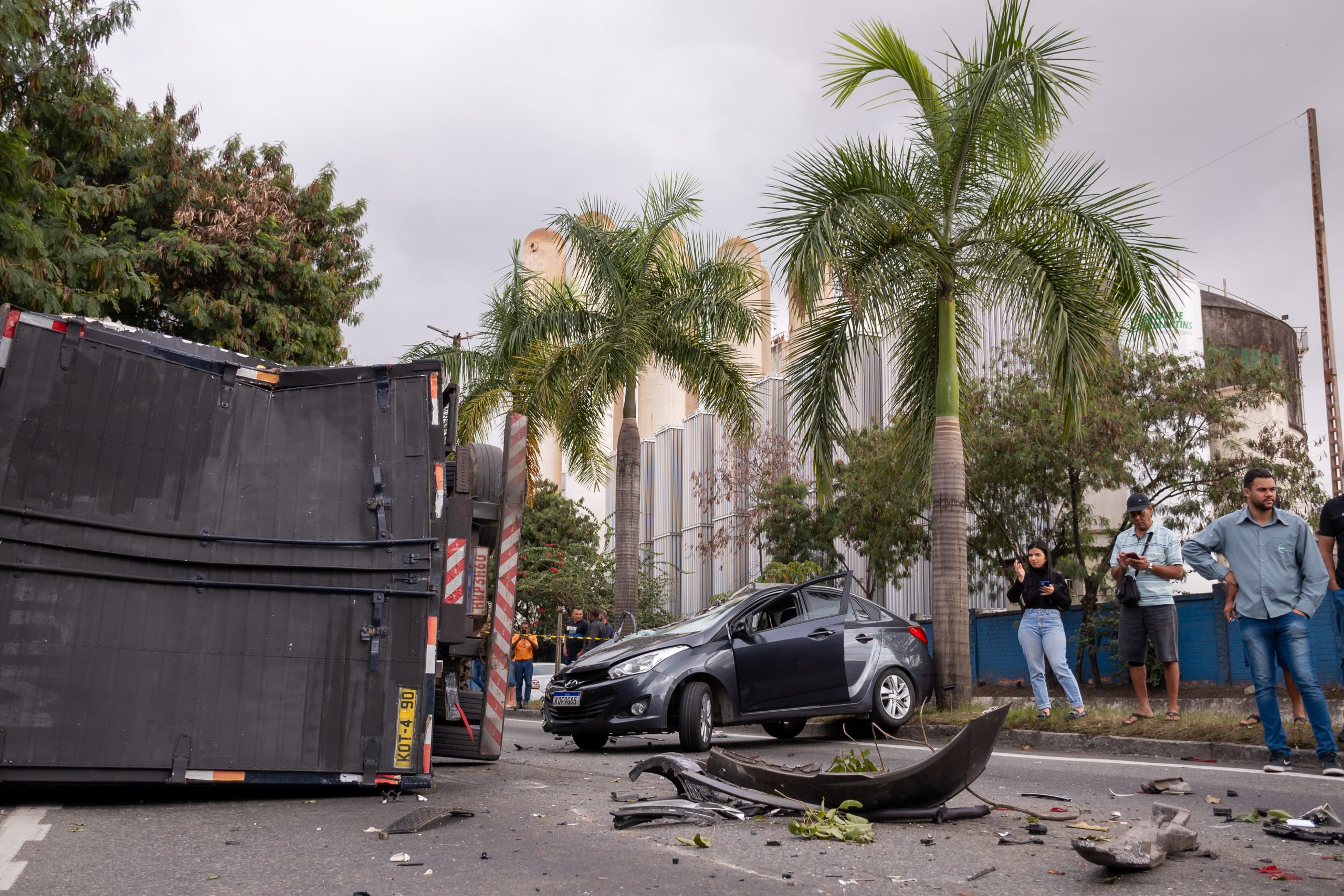 Um grave acidente envolvendo oito veículos foi registrado na manhã desta quarta-feira, dia 2, no trecho urbano da Rodovia Lúcio Meira (BR-393), na altura do bairro Vila Santa Cecília, em frente ao Colégio Estadual Manuel Marinho. A colisão aconteceu por volta das 8h40, quando um caminhão que seguia pela rodovia, no sentido Barra Mansa, perdeu o controle por motivos ainda desconhecidos, invadiu a pista contrária e tombou, atingindo outros veículos, dois deles estavam estacionados.