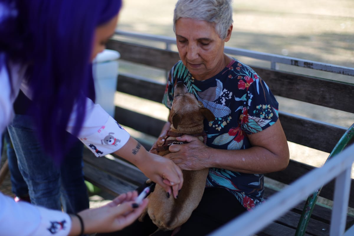 Moradores da Vila Americana, o casal José e Dolores Maria Mota foram com a filha Débora vacinar os pets da família na Praça Brasil, Vila Santa Cecília. O ponto de vacinação foi montado no local durante ação social promovida pela prefeitura e pelo UniFOA e agregou outros serviços como informações sobre adoção e agendamento de castração. “Viemos vacinar os dois cães e o gato, além disso, aproveitamos para marcar a castração de um dos cães que ainda não passou pela cirurgia”, disse Dolores.
