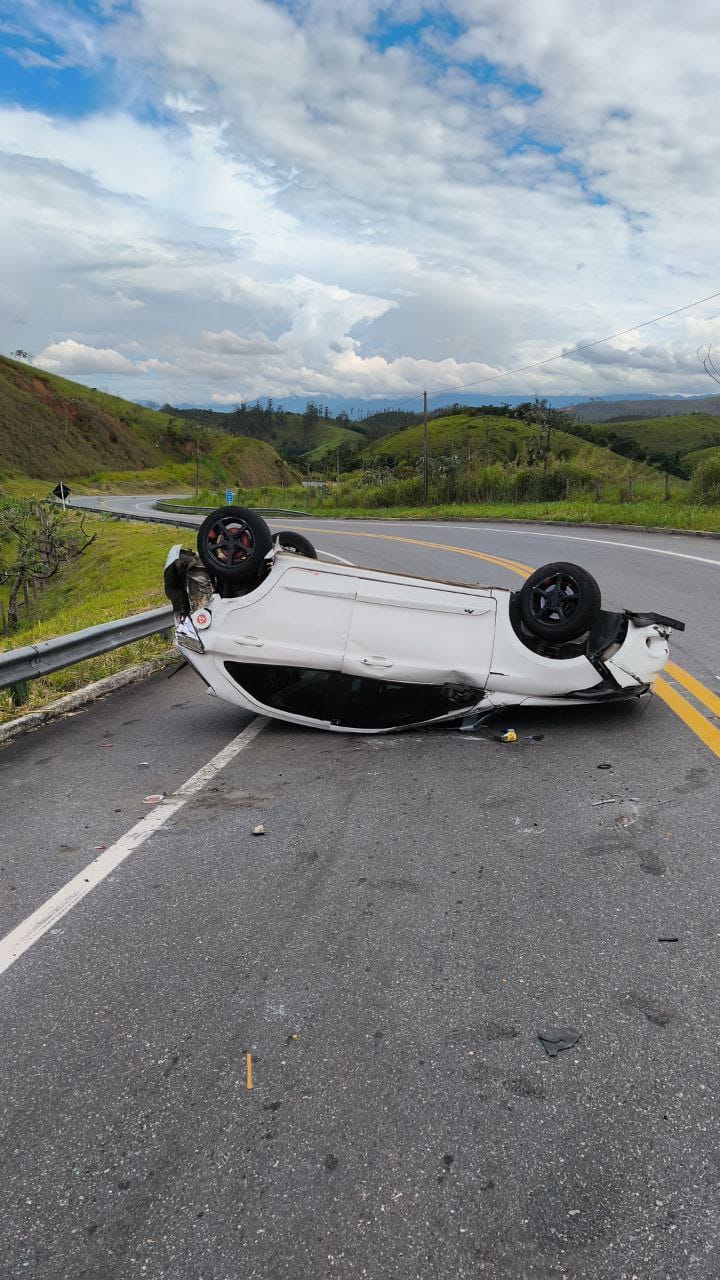 De acordo com informações da Polícia Rodoviária Federal (PRF), o acidente ocorreu por volta das 14h20, quando o condutor de um veículo Ford Ka perdeu o controle da direção e capotou. Após o sinistro, o automóvel ficou imobilizado sobre a faixa de rolamento no sentido Minas Gerais, em trecho de subida, provocando a interdição parcial da via.