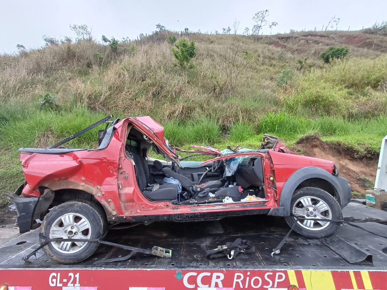 Logo atrás, uma caminhonete que seguia no mesmo sentido não conseguiu frear nem desviar, colidindo na traseira da carreta. Com o impacto, o para-choque traseiro do veículo de carga se partiu e a caminhonete ficou imobilizada sob a carreta, com os ocupantes presos nas ferragens.