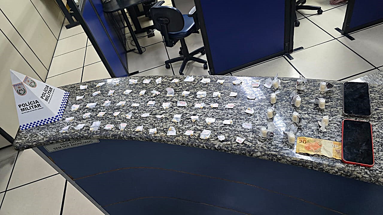 A equipe da Patrulha Tático Móvel (Patamo III) recebeu denúncia informando que o casal estaria envolvido com o tráfico de drogas na Rua J, no bairro Jardim Independência. No endereço, os policiais avistaram o casal. Na abordagem, nada foi encontrado com o homem, mas com a mulher, os policiais localizaram uma pochete escondida dentro da calça, contendo 61 pedras de crack, 11 pinos de cocaína, dois celulares e R$ 20. Ainda de acordo com a PM, o suspeito assumiu a propriedade do material.