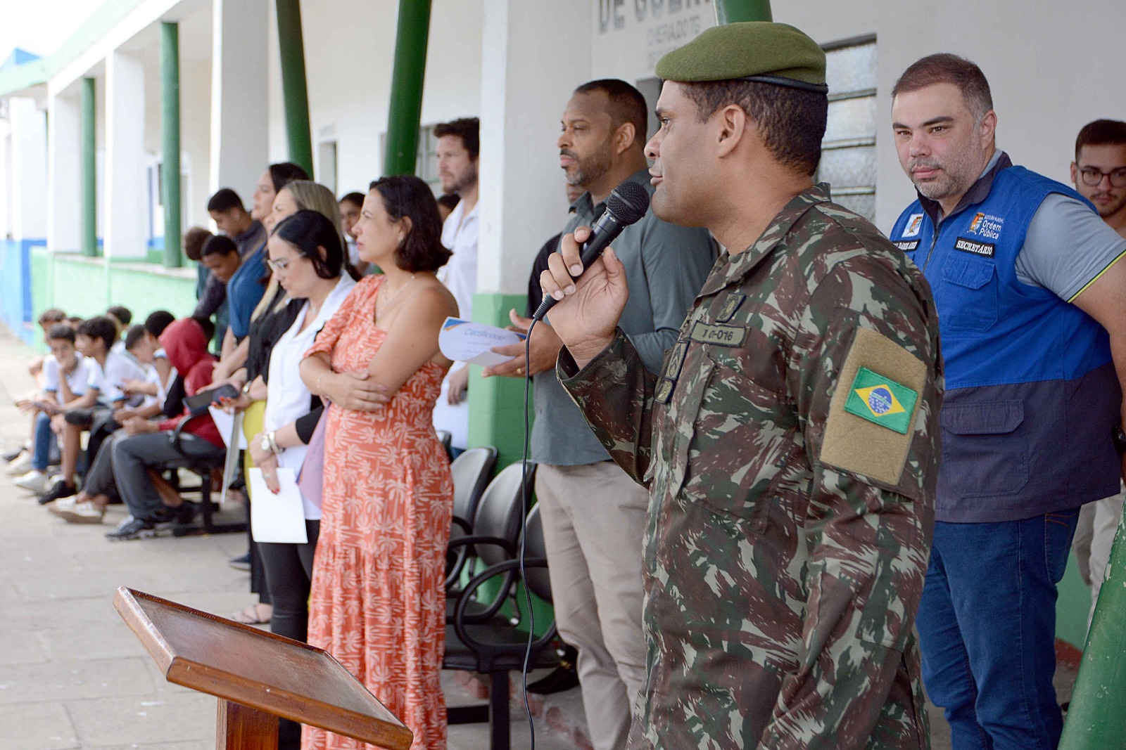 Durante as atividades, os estudantes também participaram de ações práticas e dinâmicas com a equipe da Guarda Municipal e integrantes do Tiro de Guerra, que reforçaram, de forma participativa, conceitos de disciplina, respeito e cidadania.