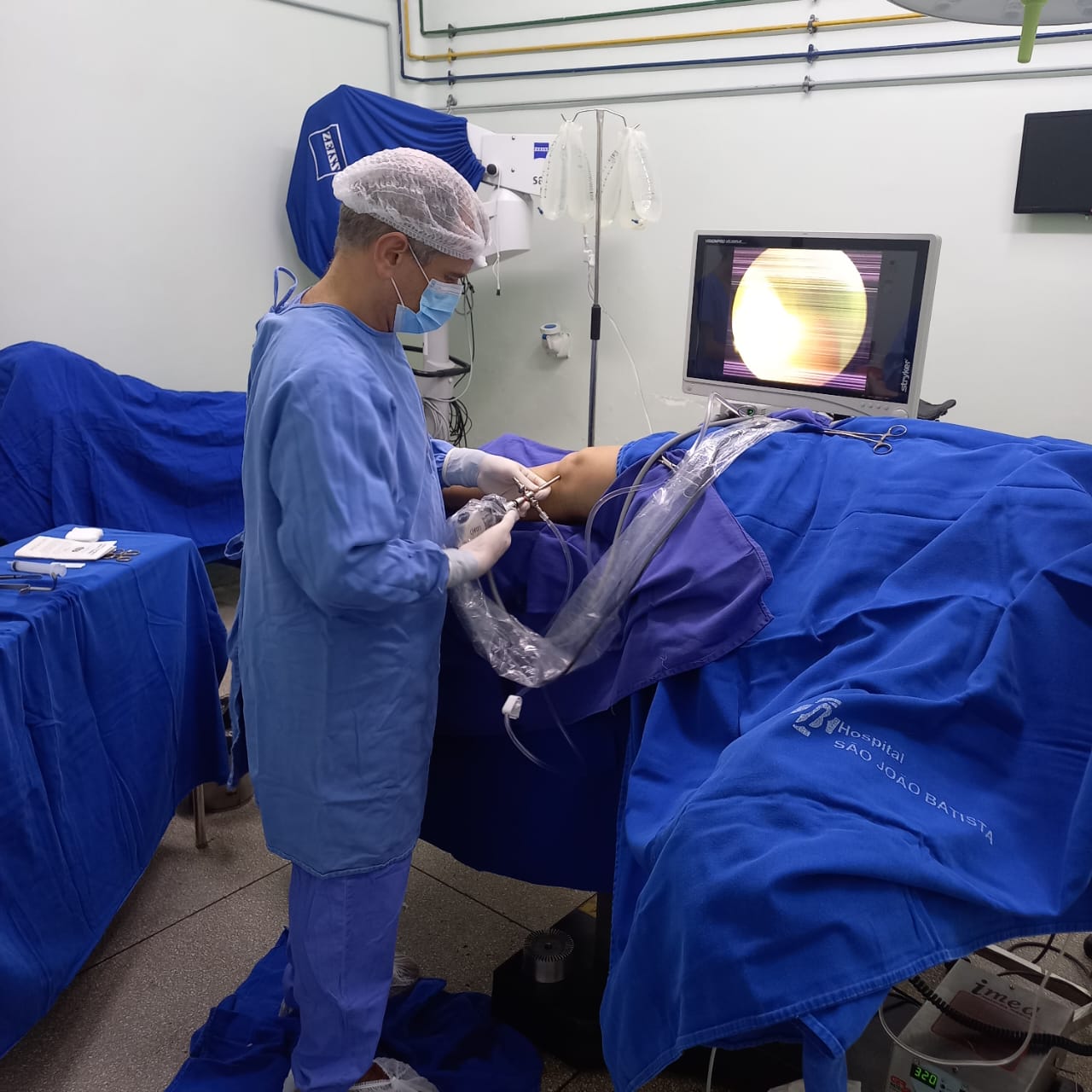 Um dos pacientes, de 44 anos, foi submetido a cirurgia de troca de prótese traqueal associada à broncoscopia rígida. O procedimento consiste em substituir uma prótese na traqueia para manter a passagem aérea aberta, geralmente em casos de estenose ou obstrução. A broncoscopia rígida, por sua vez, tem a finalidade de inspecionar e posicionar a prótese com precisão, garantindo o funcionamento adequado da via respiratória.