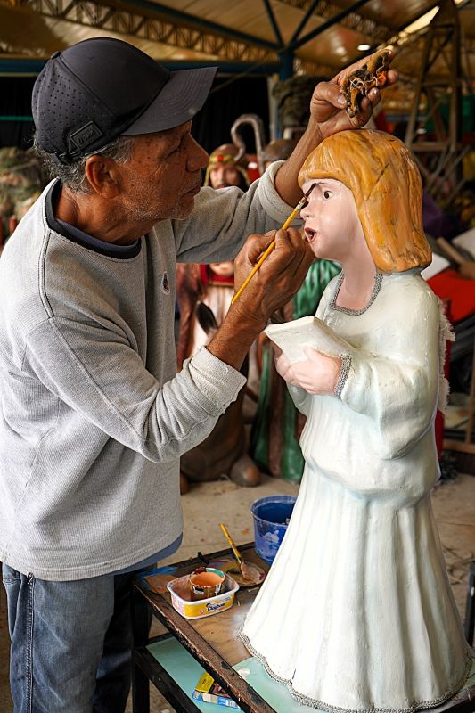 O artista plástico Paulo Bernardo, coordenador da equipe responsável pelas peças e acabamentos, destacou o caráter artesanal e afetivo da produção. “Somos em cinco profissionais: costureira, aderecistas e artistas, e trabalhamos o ano todo nas grandes decorações da prefeitura, como a Toca do Coelho, o Arraiá da Cidadania, o Bloco da Vida e, claro, o Natal. Também atendemos várias secretarias com serviços de eventos. Cada escultura e cada detalhe carregam nossa esperança e o desejo de levar alegria às pessoas. O mais bonito é ver as famílias pararem para admirar e as crianças sorrirem. É um trabalho que enche o coração”, contou Paulo.