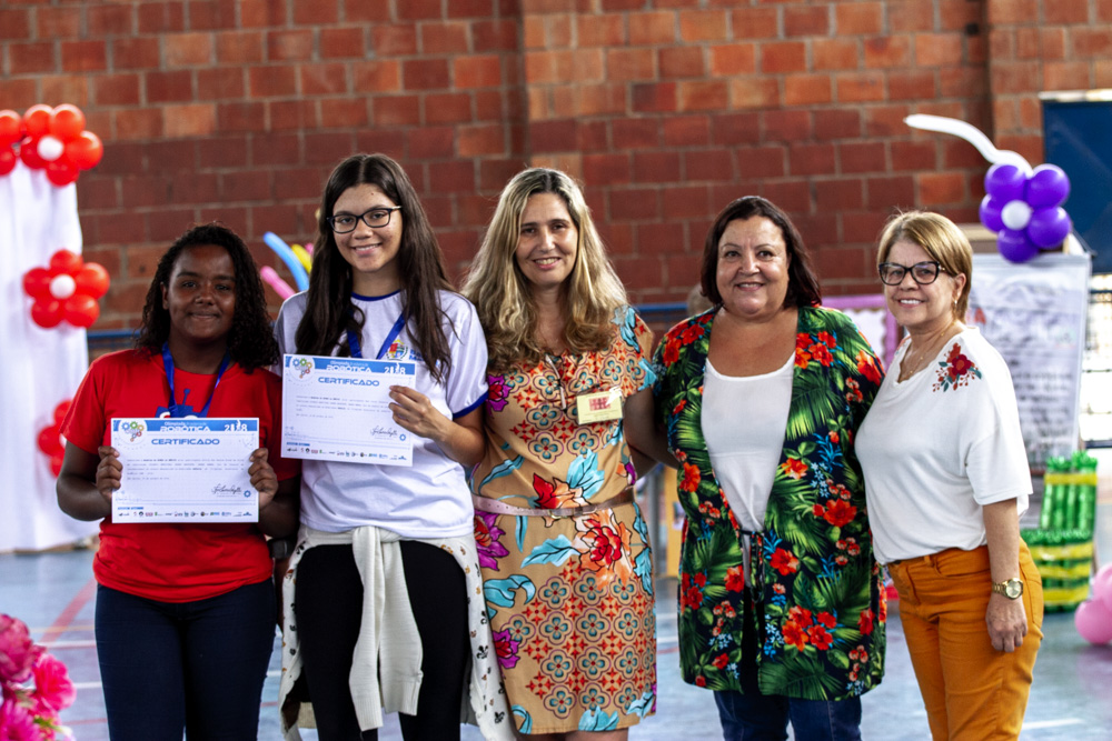 Duas alunas foram homenageadas por obterem as melhores notas na Olimpíada Brasileira de Robótica – Foto Fábio Guimas
