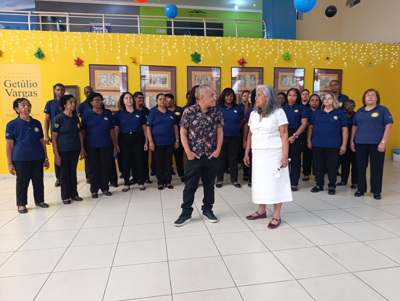 O clima natalino já toma conta de Volta Redonda. O Coral Municipal abriu oficialmente sua programação de Cantatas de Natal nessa terça-feira, dia 2, na Biblioteca Municipal Raul de Leoni, na Vila Santa Cecília. O evento emocionou o público presente com um repertório repleto de clássicos natalinos, incluindo sucessos como ‘Então é Natal’, ‘Canção dos Sinos’, ‘Estrela de Natal’, ‘O primeiro Natal’, ‘Glória’, ‘Noite Jubilosa, ‘Sei Quem É’, ‘Chorinho Natalino’ e ‘Natal Todo Dia’, interpretados com sensibilidade pelos coristas.