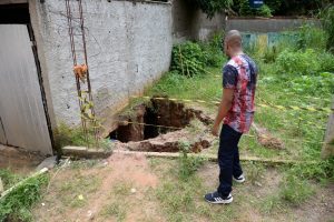 A preocupação dos moradores não é só essa. A situação é que agora mais de dez casas estão apresentando rachaduras e buracos no solo por conta do vazamento da manilha.