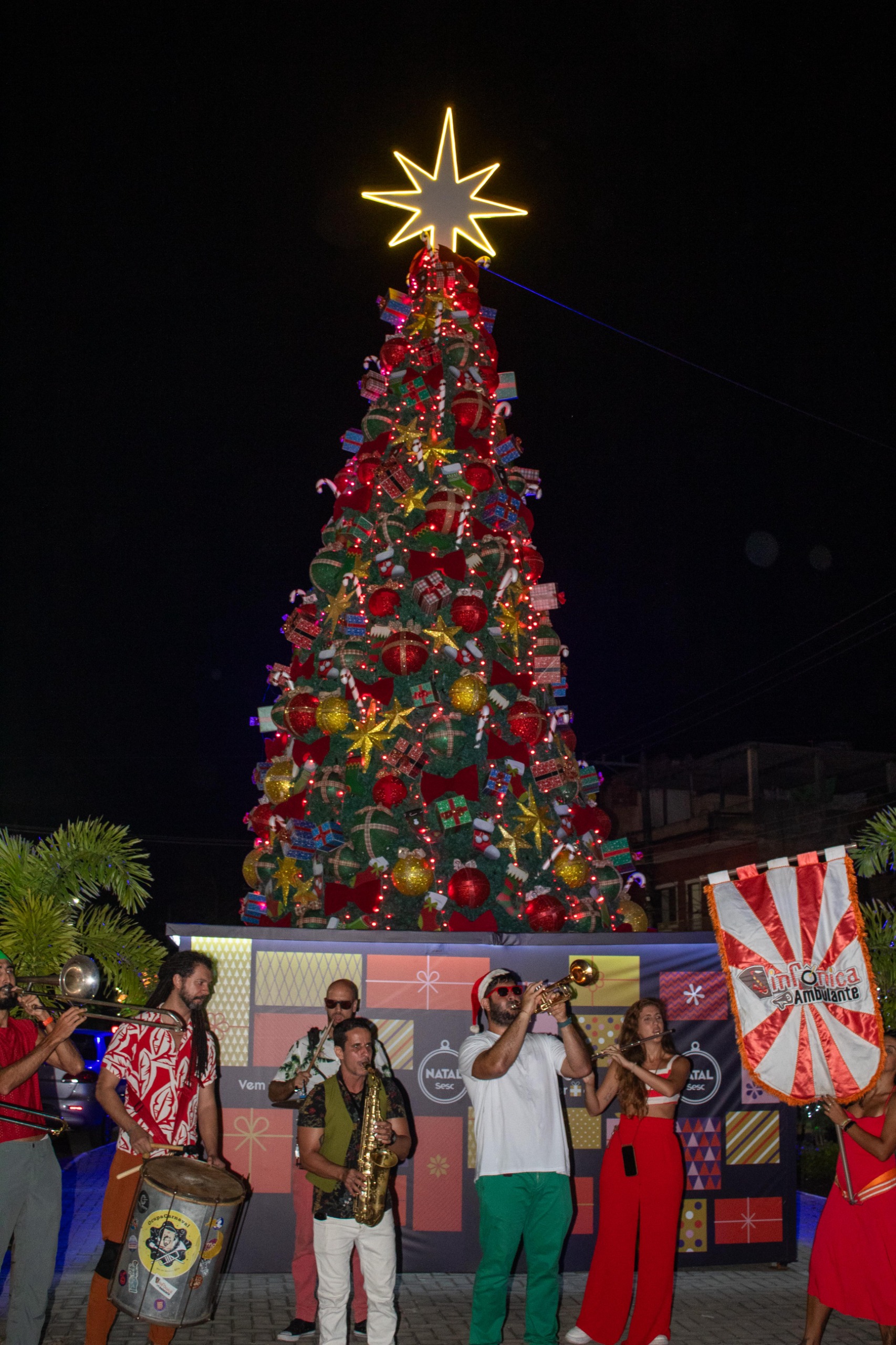 A noite contou com o cortejo da Orquestra Sinfônica Ambulante, brass band formada por cerca de 10 músicos, com bateria, saxofones, flautas, trompetes e trombones. O grupo apresentou um repertório diverso, unindo clássicos natalinos como Jingle Bell/Bate o Sino, Anoiteceu, Pinheirinho e When the Saints Go Marching In, a sucessos brasileiros conhecidos do público, como Maria Maria (Milton Nascimento) e Anunciação (Alceu Valença).