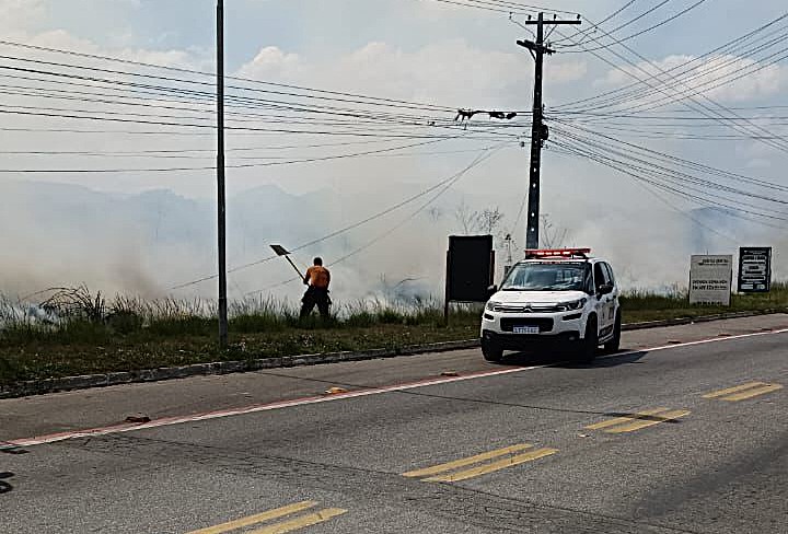 O primeiro atendimento ocorreu na Avenida Fernando Bernardelli, nas proximidades da Guardian, empresa de vidros planos, no bairro Novas Colinas. De acordo com os agentes da Defesa Civil, ao chegar ao local a equipe constatou que o fogo havia se espalhado pela vegetação, formando uma densa cortina de fumaça. Para conter as chamas, houve ação conjunta entre a Defesa Civil, o Corpo de Bombeiros e a Guarda Municipal, que prestou apoio no controle do trânsito. “A empresa Guardian também colaborou disponibilizando estrutura para o abastecimento do caminhão-pipa, o que possibilitou maior agilidade no atendimento”, informou o diretor da Defesa Civil, Bruno Souza.