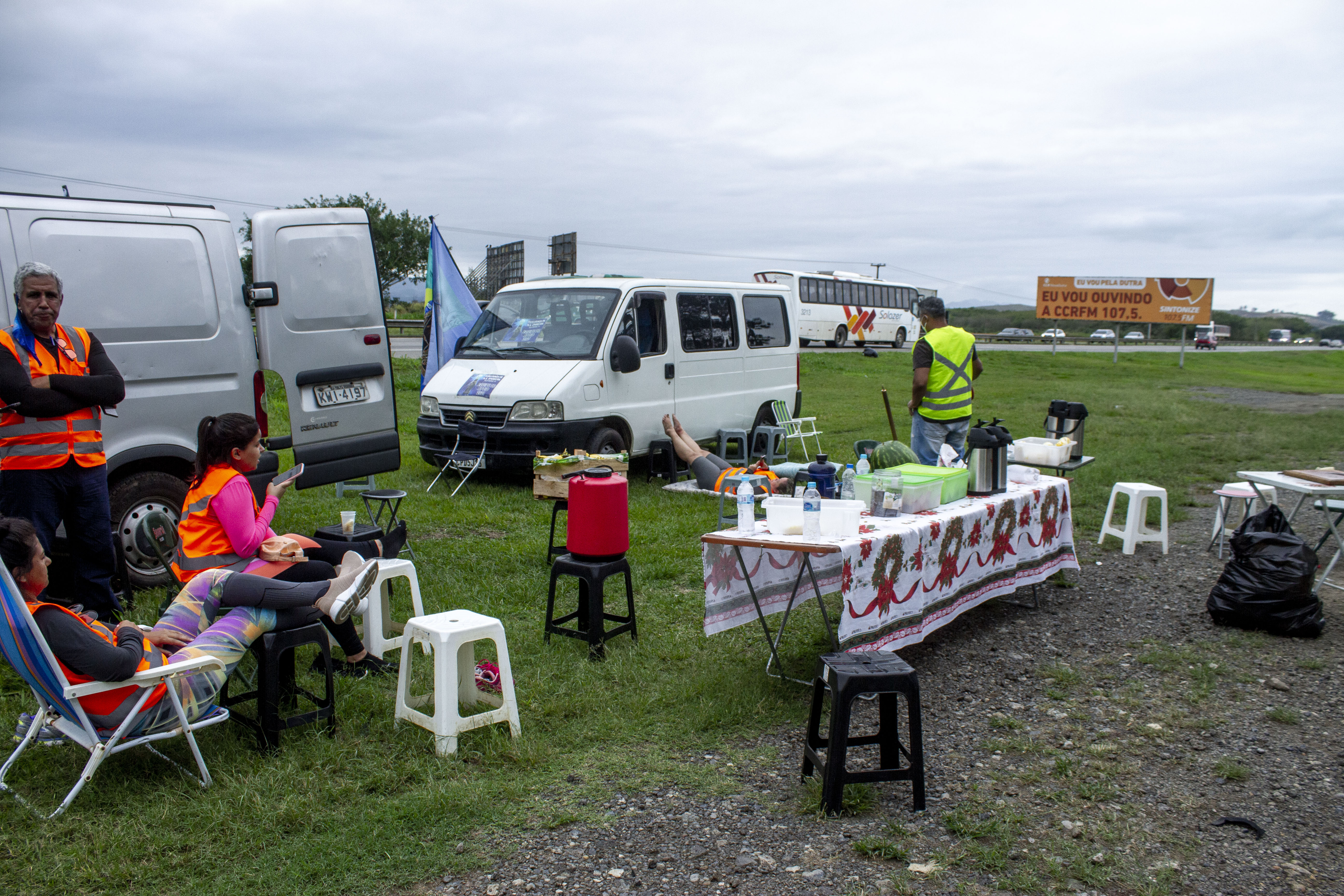 O outro grupo é o Peregrinos Nossa Senhora da Aparecida, com 73 pessoas. Na assistência, Carlos Alberto de Barros, que já participou da romaria cinco vezes, estava esperando o restante do seu grupo chegar para seguir a viagem de carro. “Nós encontramos um lugar bom para parar, montamos a mesa com cadeiras, quem está caminhando chega, faz seu lanche, descansa e segue viagem. É uma caminhada puxada e nós estamos aqui para dar apoio”, disse.