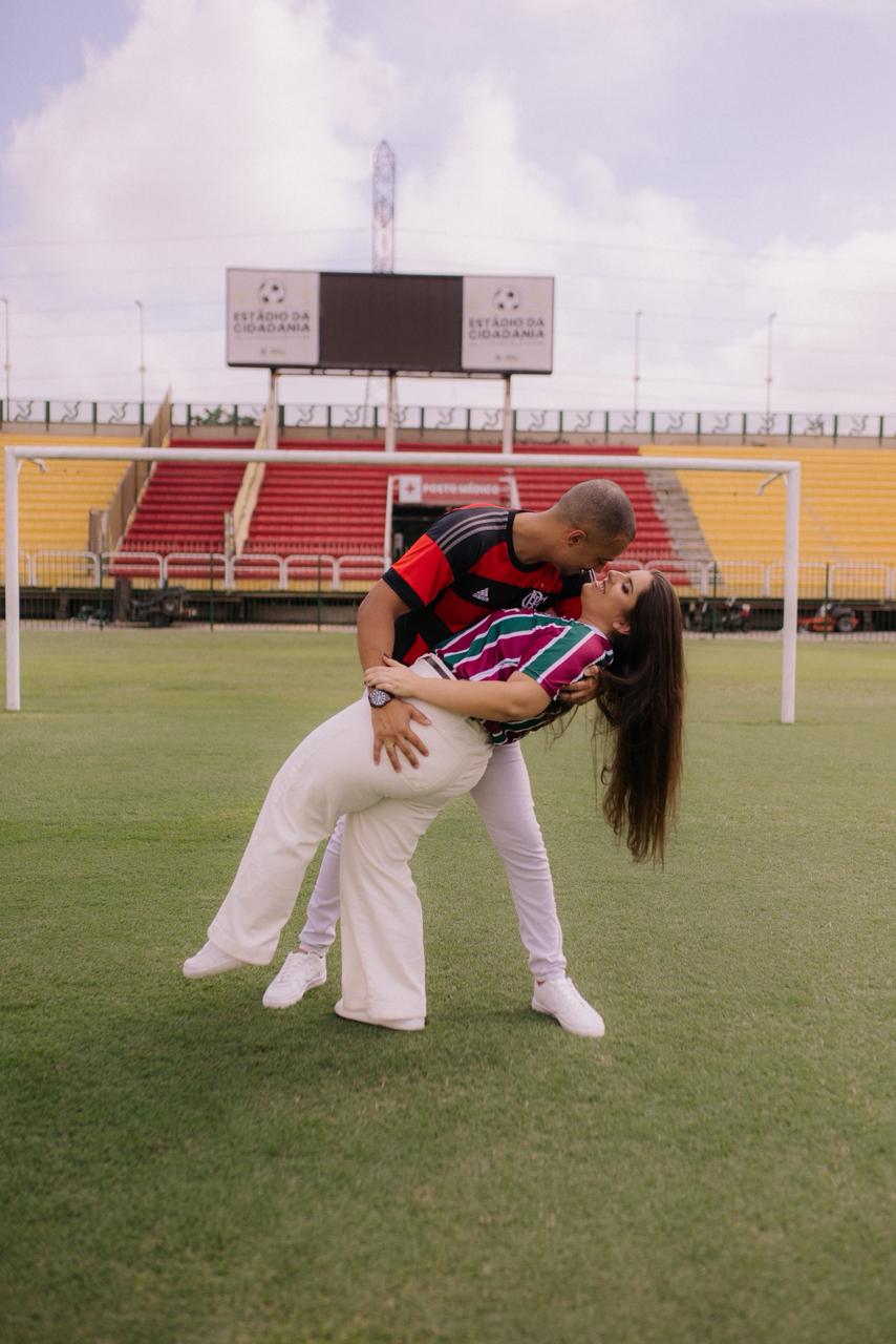 Foi justamente por carregar boas lembranças que Diego decidiu voltar ao estádio para fazer o pedido de casamento. Para manter a surpresa, ele contou com a ajuda de um fotógrafo e criou uma história. “Eu disse que a gente ia lá ajudar um amigo a fazer um teste de equipamentos. Ela não desconfiou de nada”, contou.