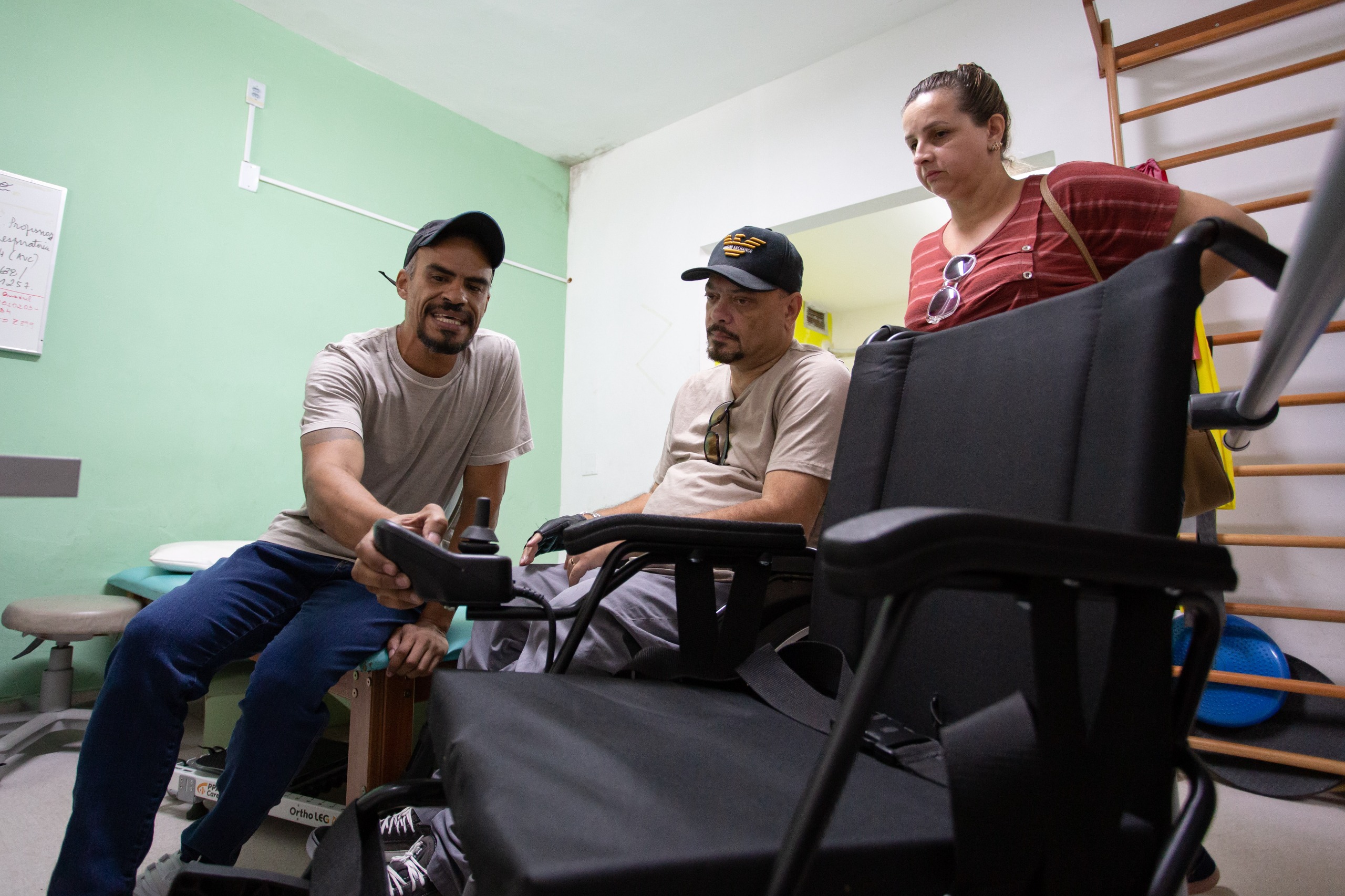 Outro beneficiado foi Messias Alves de Silva Júnior, 52 anos, morador do bairro Aero Clube. Ele utiliza cadeira de rodas há quase 24 anos, após sofrer um acidente que resultou em lesão cervical alta e tetraplegia. “Há quase 24 anos uso cadeira de rodas. Sempre foi muito difícil, principalmente por causa da acessibilidade e da autonomia. Agora eu espero ganhar mais independência. Já experimentei a cadeira nova e estou aprendendo a lidar com ela. Vai facilitar muito, inclusive para minha esposa, que é quem anda comigo, me ajuda nas passagens e no dia a dia. É companheira para todas as horas”, contou.