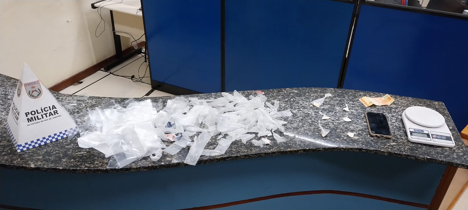 Seis sacolés de cocaína, um celular, uma balança de precisão e