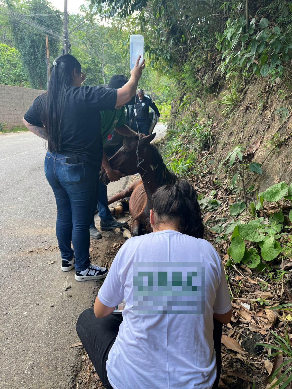A ação aconteceu após denúncias recebidas pela secretaria, informando que o animal estava caído e sem assistência. Ao chegar ao local, a equipe constatou que a égua, visivelmente debilitada e sem sinais de cuidados adequados, havia passado por um parto difícil, e o filhote, infelizmente, não resistiu.