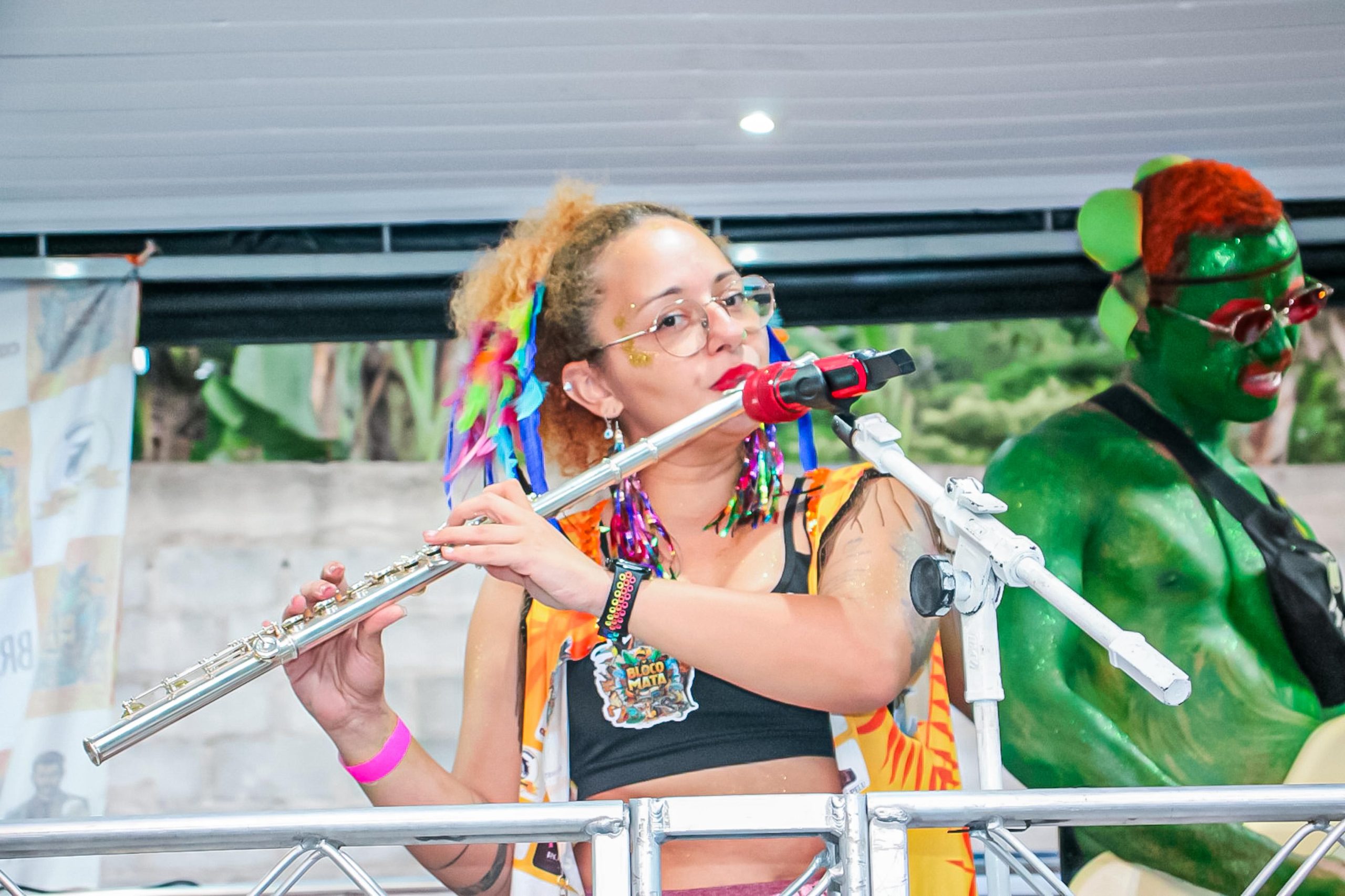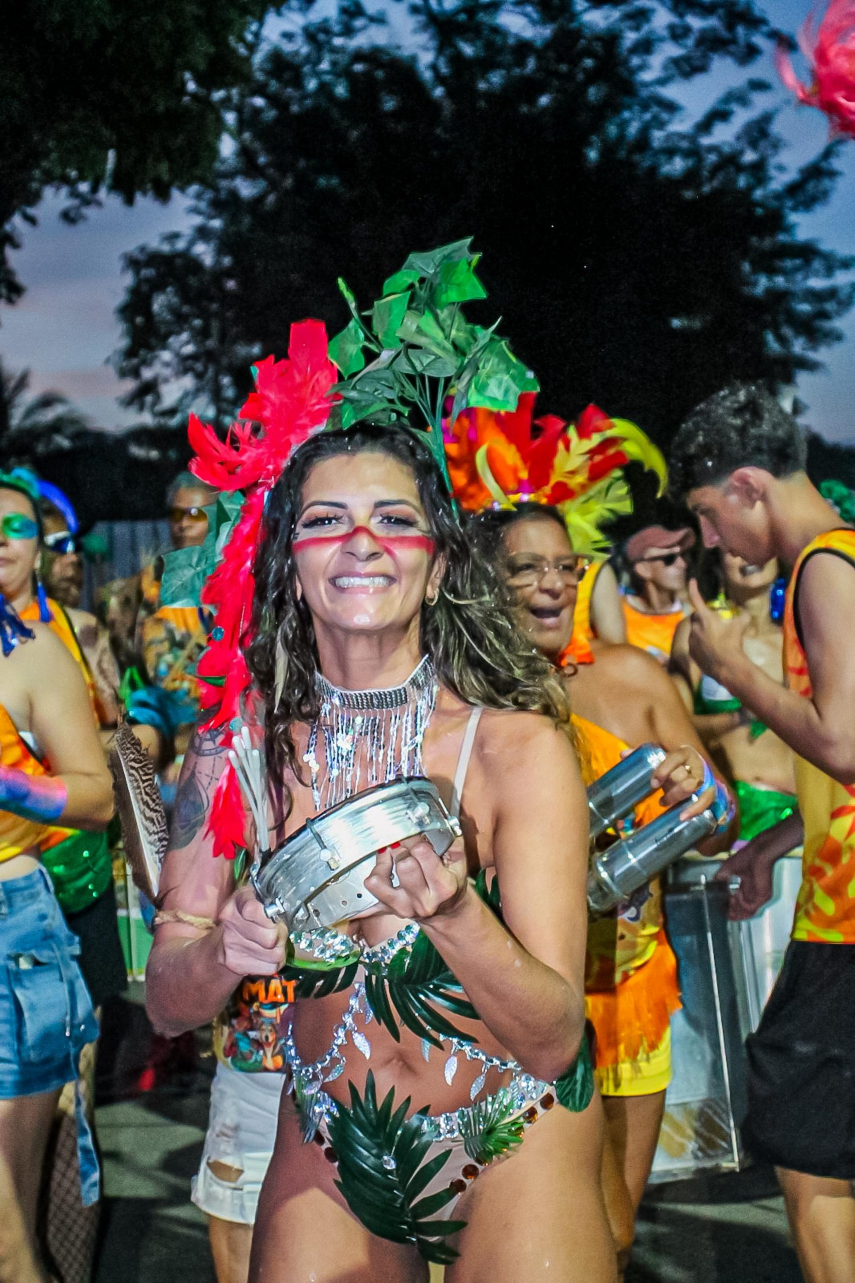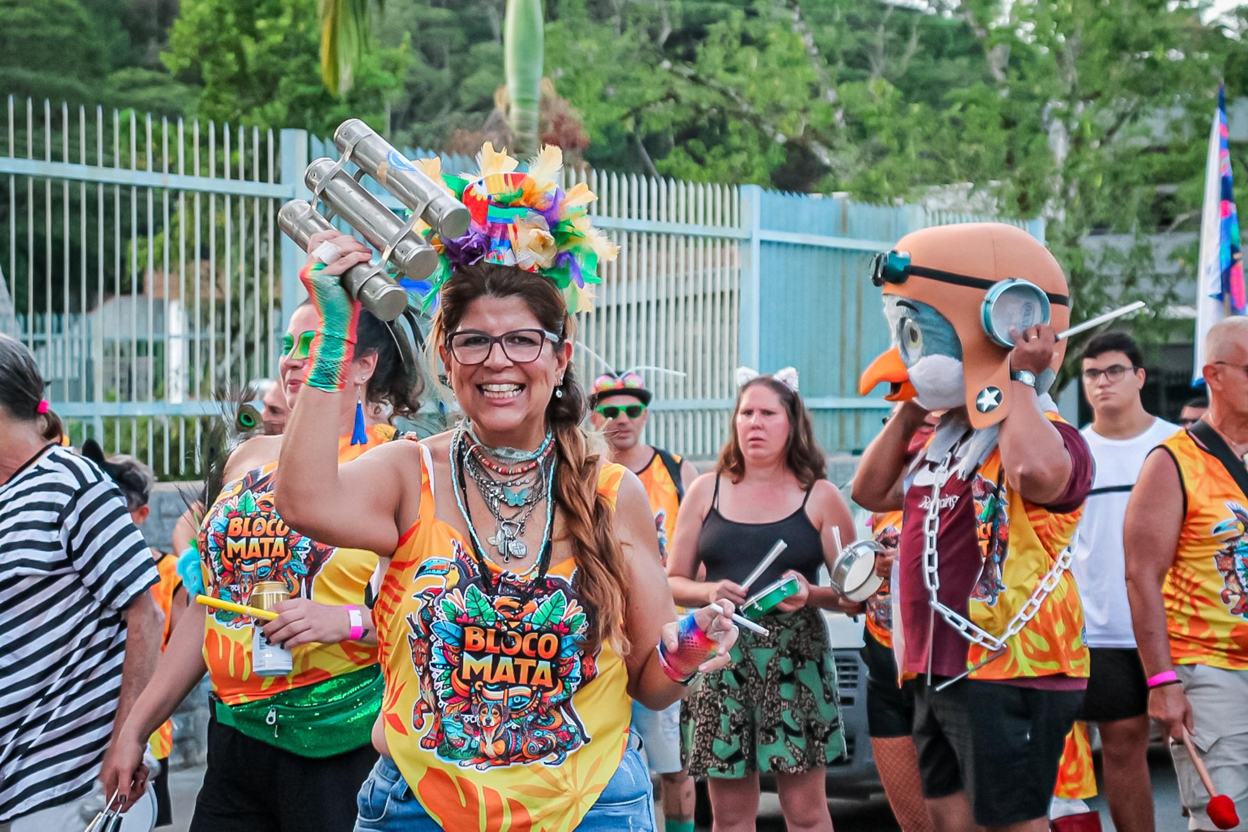 Lilian participa do Bloco da Mata desde o primeiro ano. Com muita animação, ela explicou sua fantasia e o tema do bloco neste ano. “Estou no Bloco da Mata desde o primeiro ano e sempre fico muito animada. Neste ano, seguindo o tema do desfile focado nos animais da Mata de Ipiabas, vim com penas de pavão artesanais. Estou simplesmente adorando a ideia deste ano”, declarou Lilian.
