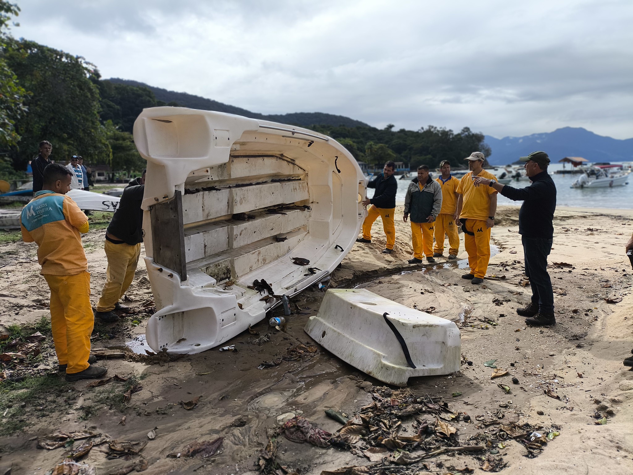 Cinco botes abandonados na areia da praia da Vila do Abraão foram colocados em uma traineira e transportados para o depósito da Secretaria Executiva de Comércio e Postura, no continente. Essas embarcações já haviam sido notificadas anteriormente e, como não foram retiradas pelos donos, a Prefeitura as recolheu.