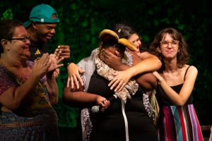 A diretora do Dpes (Departamento de Proteção Especial) da Smac, Mariana Pimenta, também fez questão de abraçar os alunos após o fim da peça. “Vocês são maravilhosos, fiquei muito emocionada”, afirmou. Na plateia ainda estavam outros usuários do CAPD, familiares e a professora de fotografia do Centro-Dia, Ana Paula Silva, que registrou todas as cenas.