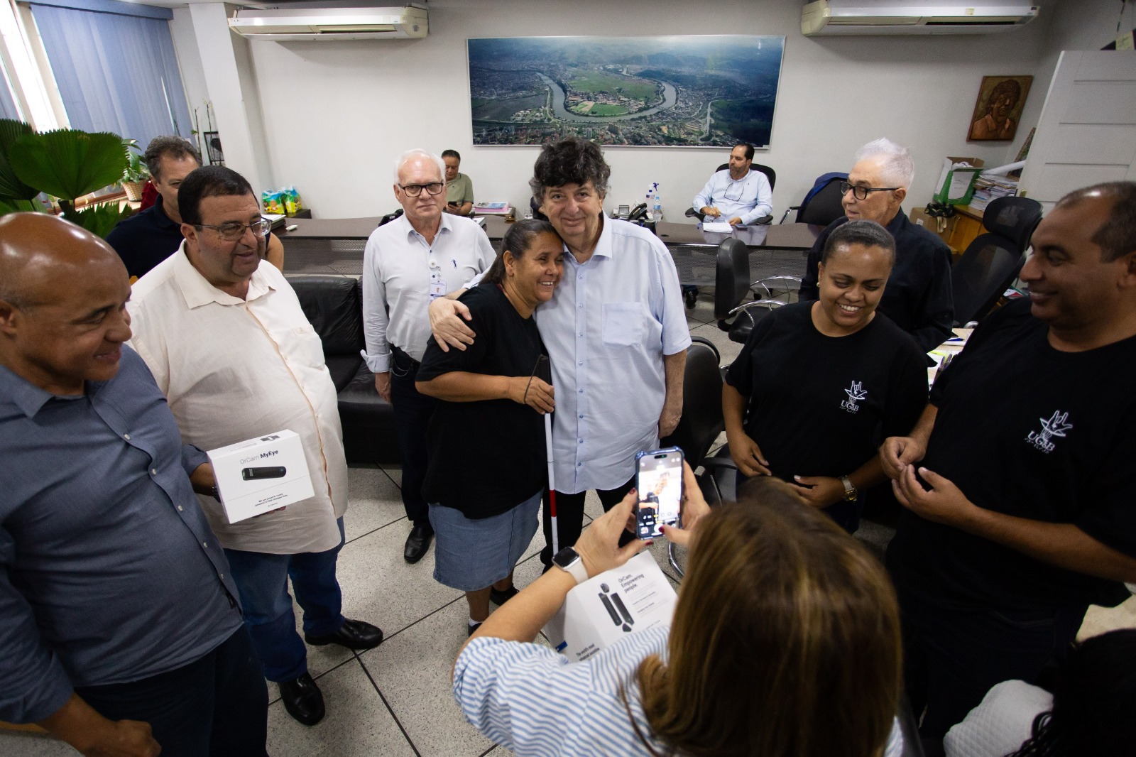 A Prefeitura de Volta Redonda realizou nesta quinta-feira, dia 9, a entrega dos primeiros pares de óculos equipados com o aparelho de tecnologia assistiva OrCam MyEye 2, que conta com um revolucionário sistema de reconhecimento de caracteres capaz de facilitar a leitura de textos, localização de objetos e identificação de cédulas, entre outros recursos que irão ajudar na autonomia e socialização. A cerimônia, realizada no Palácio 17 de Julho, aconteceu no dia em que se comemorou, em 2025, o Dia Mundial da Visão, celebrado todos os anos pela Organização Mundial da Saúde (OMS) na segunda quinta-feira de outubro.