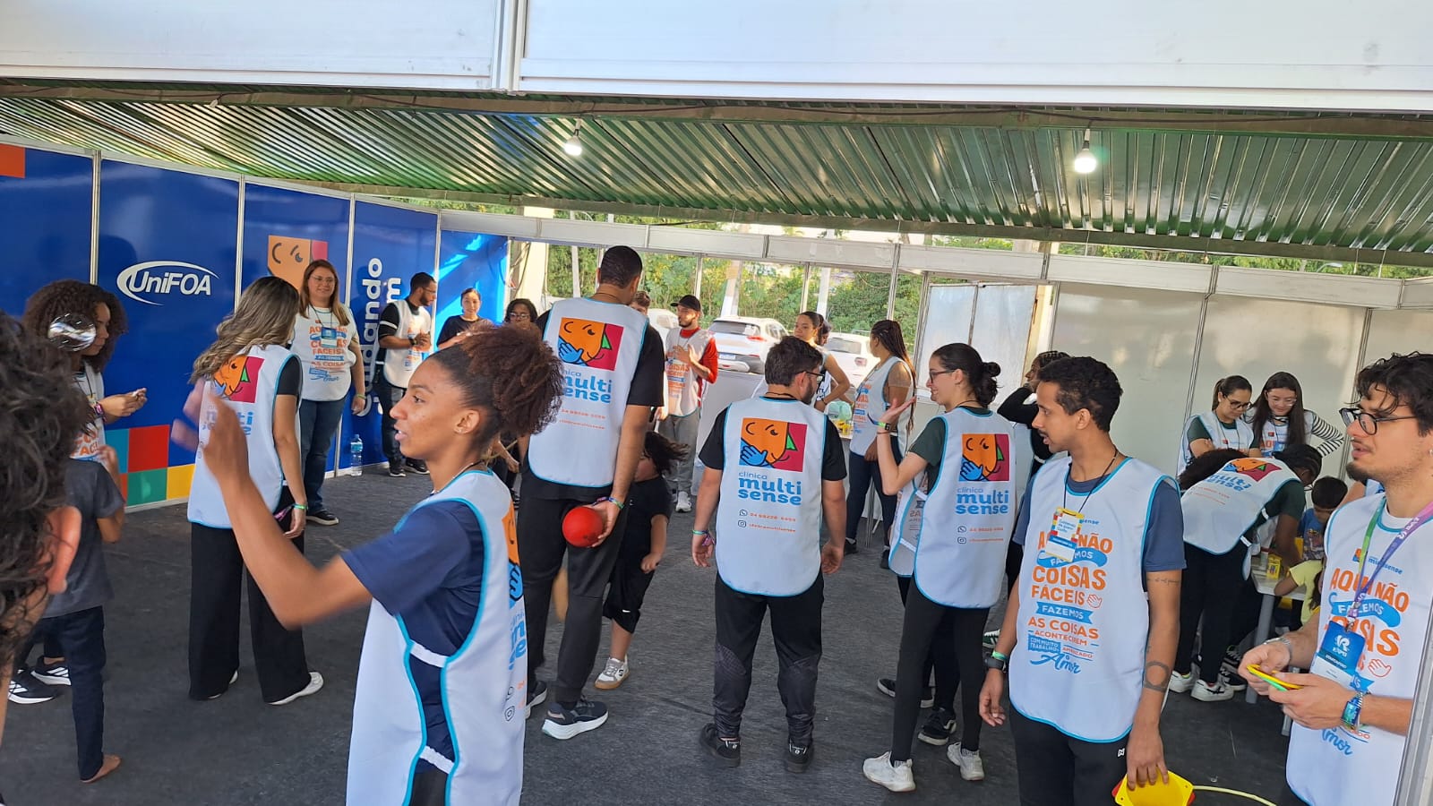 A participação dos estudantes do UniFOA foi destacada pela pró-reitora de Extensão da instituição, Carolina Callegario. “Fizemos uma parceria com a Clínica Multisense disponibilizando alunos que vieram como voluntários. Nós entramos em contato com os alunos do curso de Educação Física e eles prontamente atenderam, mesmo no período de férias. Em torno de 40 alunos estão aqui desde de manhã, participaram de uma capacitação para trabalhar com pessoas neurodivergentes, almoçaram por aqui e agora estão atendendo, de fato, essas crianças, apoiando o projeto Cuidando de Quem Cuida da Clínica Multisense.” Carolina também reforçou o valor educativo e ético da atividade para os futuros profissionais.
