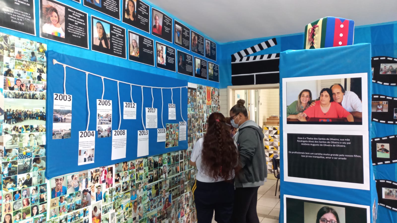 As fotografias foram organizadas em painéis, em ordem cronológica, que contam a história do Sítio Escola durante os 16 anos de atividades. Pais e alunos se divertiram ao ver a evolução da escola durante a abertura da mostra, e destacaram a importância da unidade para todos que tem pessoas com TEA na família.