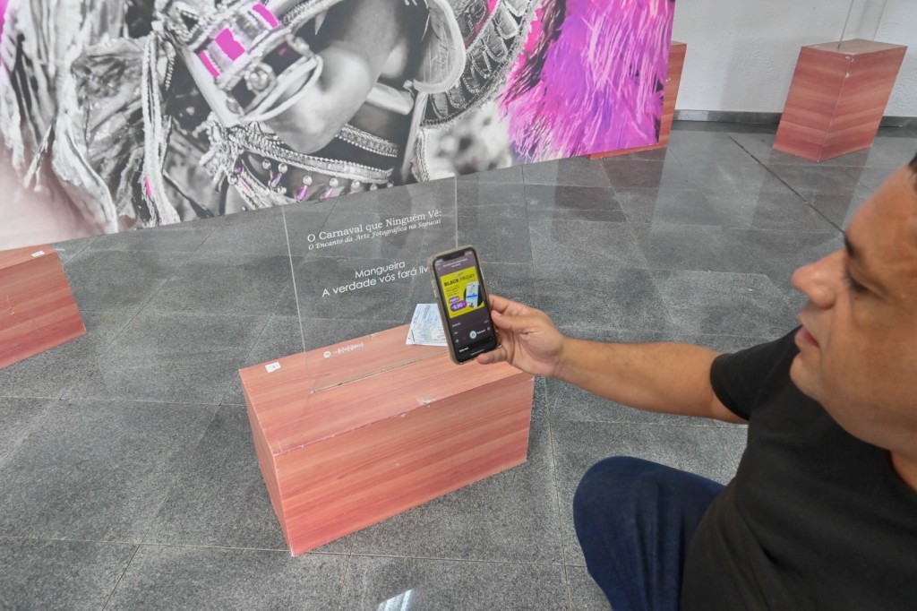 Todas obras trazem código que pode ser lido pela câmera do celular para reproduzir diversos sambas enredo – Regiane Real/PMPR
