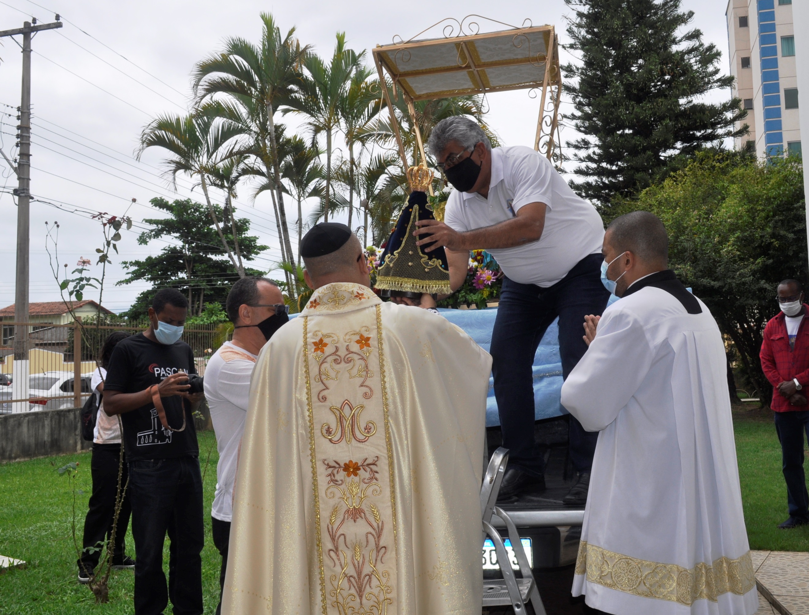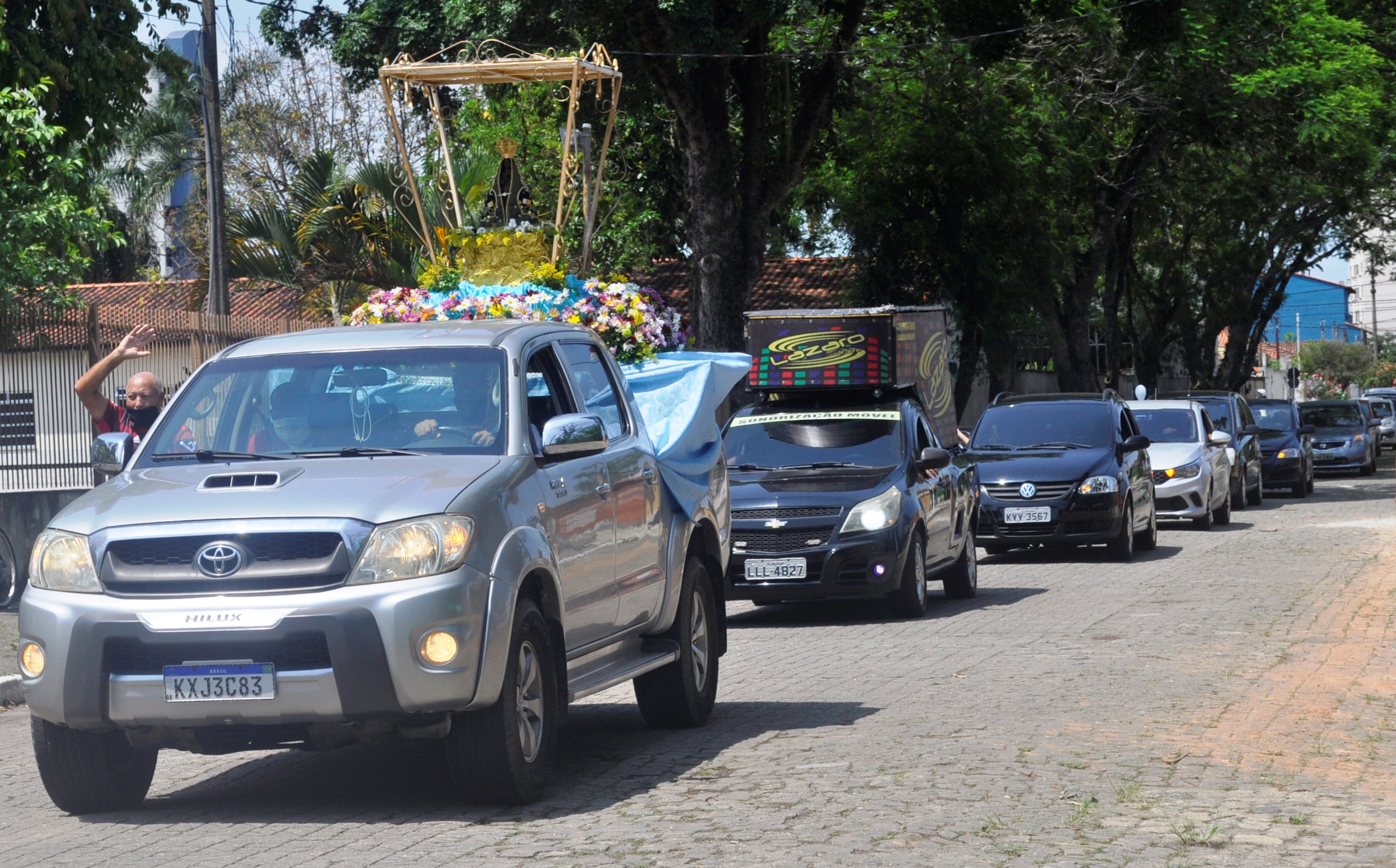 Imagem de Nossa Senhora Aparecida foi colocada no veículo para sair em carreata pelas ruas de Resende-Cyntia Freitas