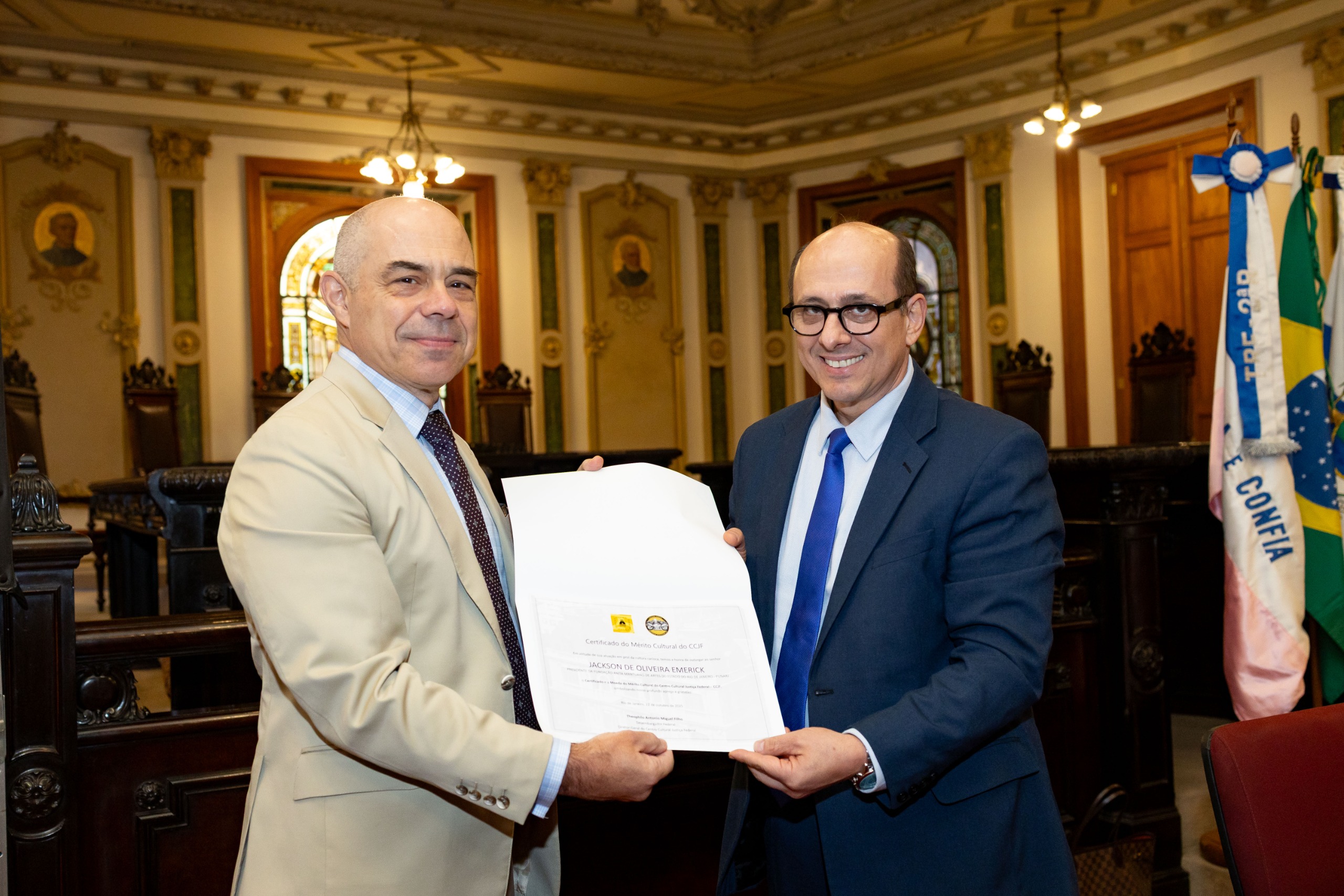 Conforme detalha Jackson Emerick, graças a esse acordo, o acervo da Funarj poderá ser exposto também neste espaço cultural, oferecendo ao público novas oportunidades de acesso e vivência com a história. Durante a cerimônia, o presidente recebeu a Moeda e o Certificado do Mérito Cultural, das mãos do desembargador Federal Theophilo Miguel , em reconhecimento à contribuição da Funarj para a cultura carioca.