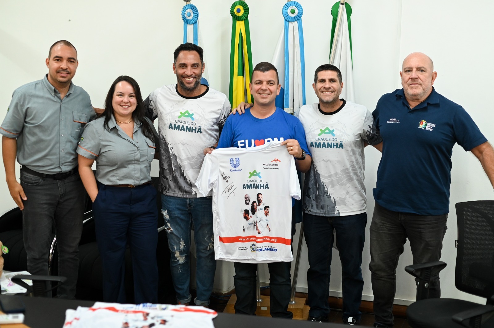 “Por experiência própria, o esporte é um grande canal de foco, determinação, busca e concretização de objetivos”. Com esta fala, o prefeito e ex-atleta do futsal, Luiz Furlani, recebeu na tarde desta quarta-feira, dia 8, o ex-jogador Ibson Silva – meia que se destacou em clubes como o Flamengo. Além dele, representantes da ArcelorMittal; o coordenador do Projeto Craque do Amanhã, Felipe Soares; e o secretário de Esporte, Mário Jorge Ferreira.