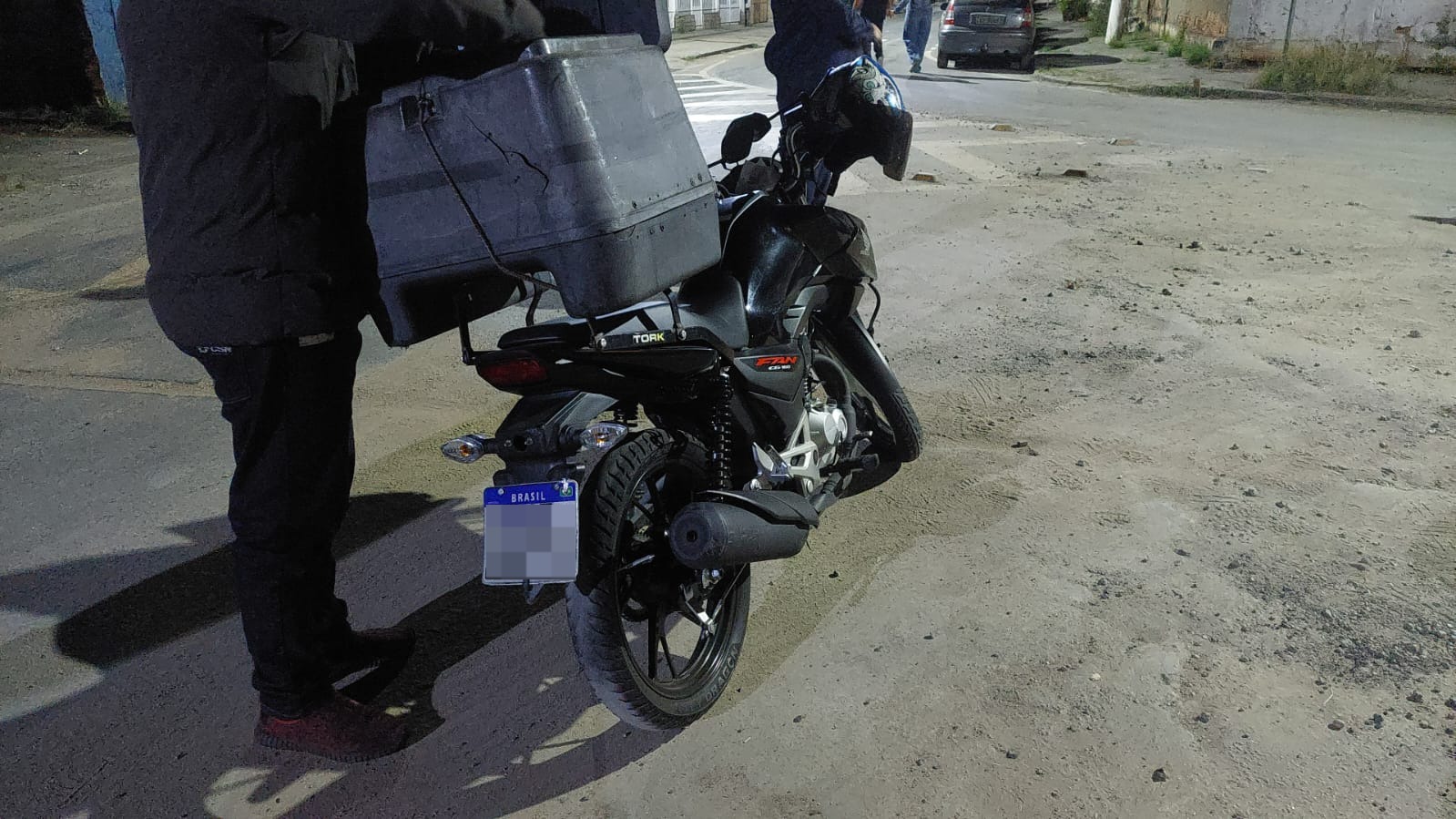 O condutor, que não possui Carteira Nacional de Habilitação (CNH), foi visto trafegando por cerca de 30 metros na contramão, empinando a motocicleta em um trecho com presença de pedestres, fluxo de veículos e carros estacionados.