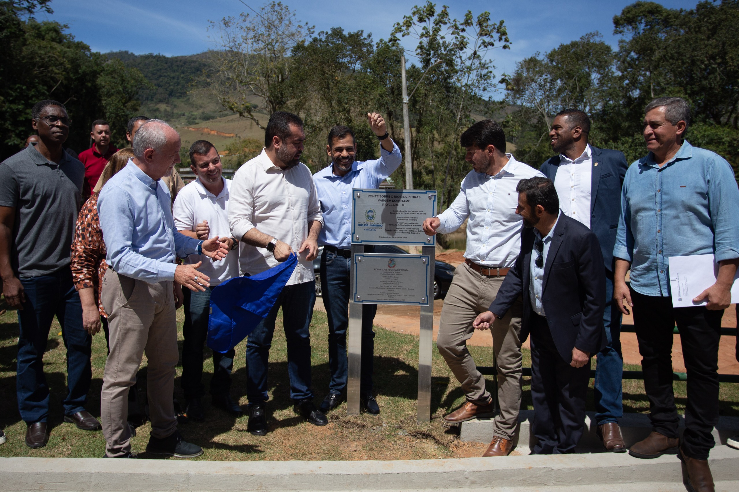 Nesta quinta-feira, dia 4, o governador Cláudio Castro esteve em Rio Claro para cumprir uma agenda que incluiu a entrega de obras que, há anos, eram aguardadas pela população. Ao lado do prefeito Babton Biondi, Castro inaugurou a última de três pontes que restabeleceram a mobilidade no distrito de Lídice, visitou o projeto Limpa Rio Margens e entregou um condomínio habitacional com 32 casas, ambos no bairro Alambari, transformando em realidade o sonho da casa própria para dezenas de famílias.